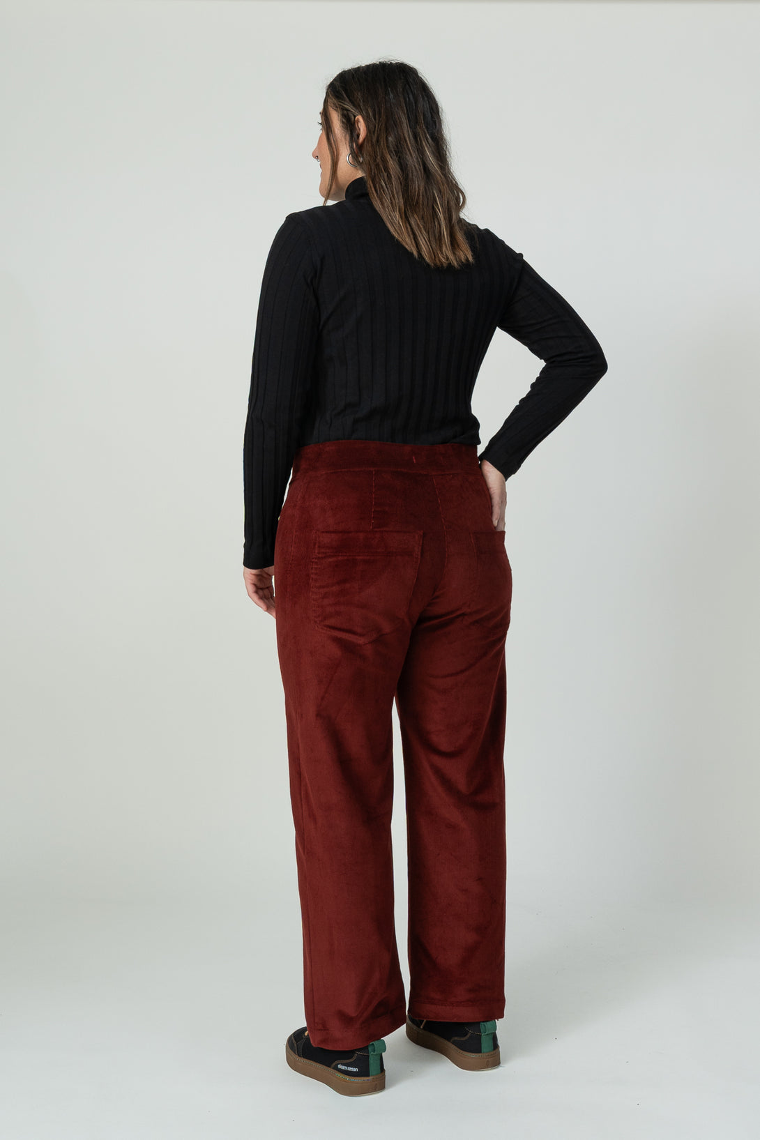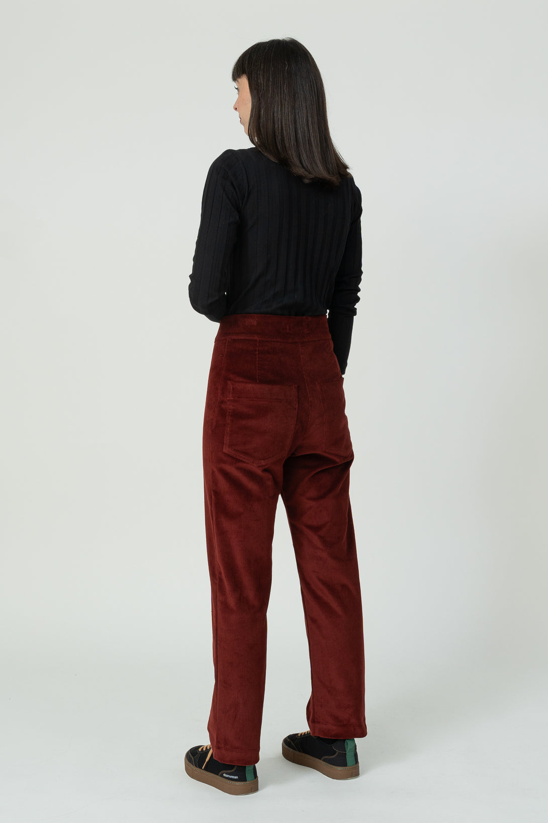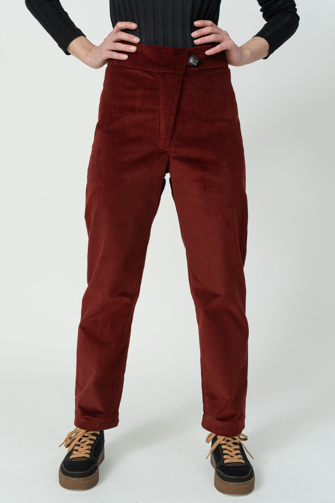 Pantalon recto con cintura y bolsillos de parche en el trasero. Muy agradable y cómodo de llevar. Diseñado por Elisa Muresan. Patronaje y confección a mano en Zaragoza en nuestro propio taller.