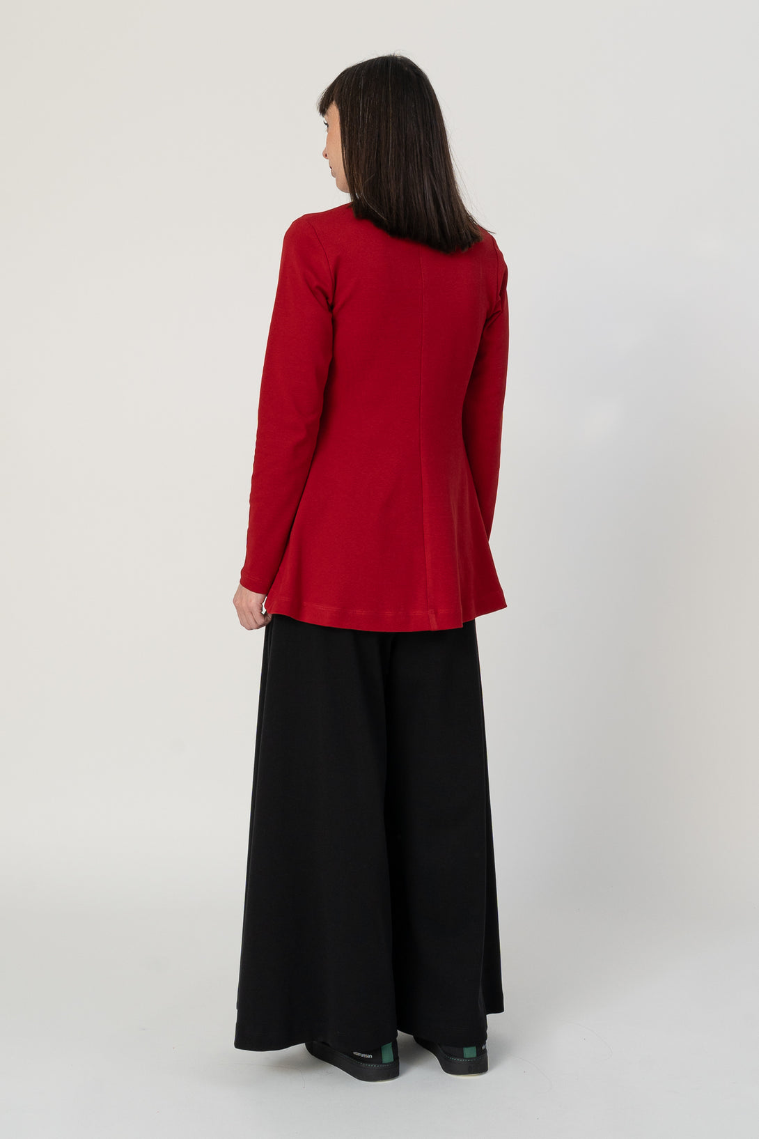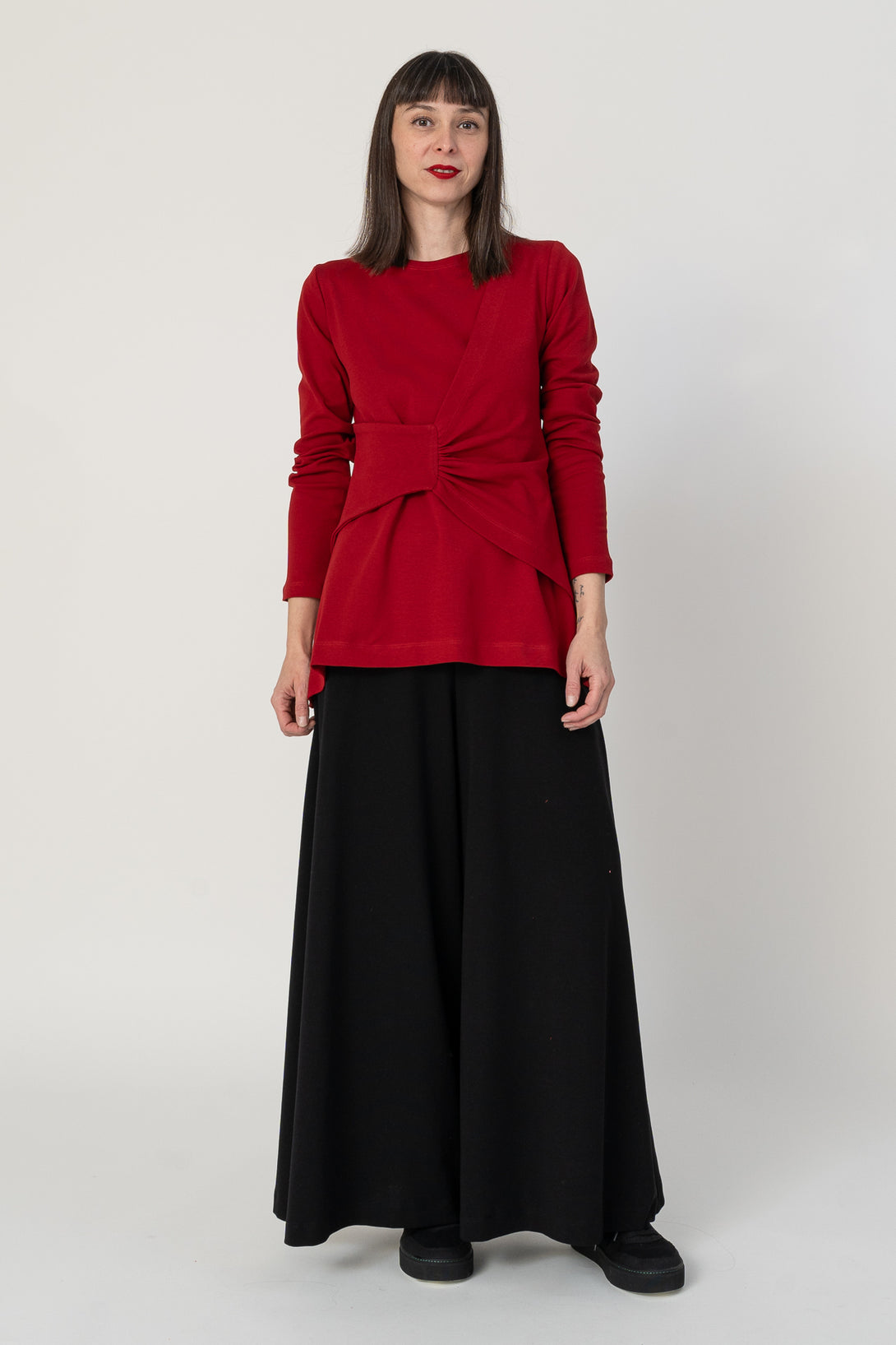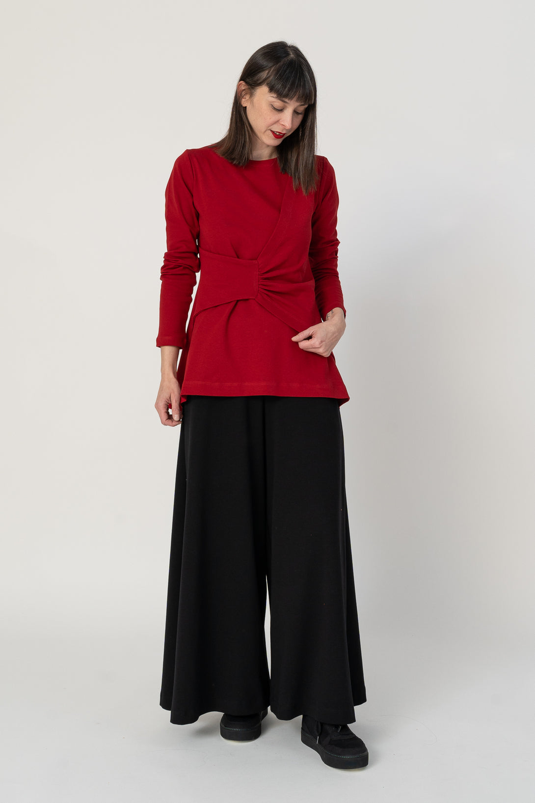 Jersey de corte A con manga larga y drapeado. Muy agradable y cómodo de llevar. Diseñado por Elisa Muresan. Patronaje y confección a mano en Zaragoza en nuestro propio taller.