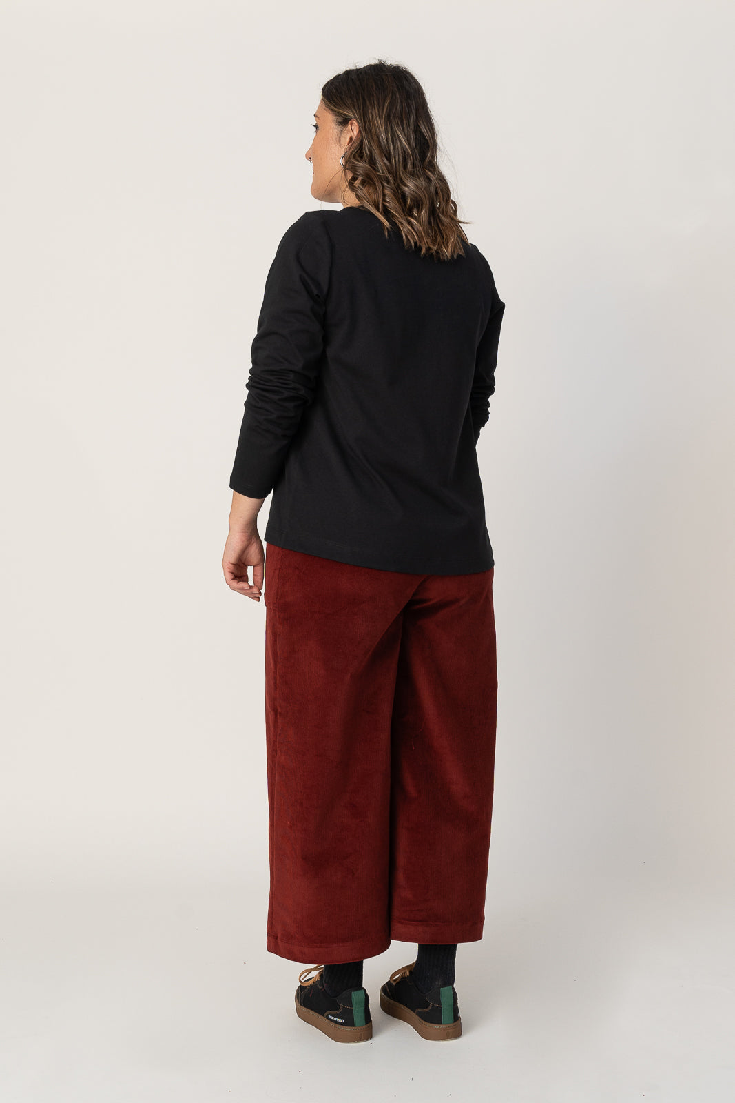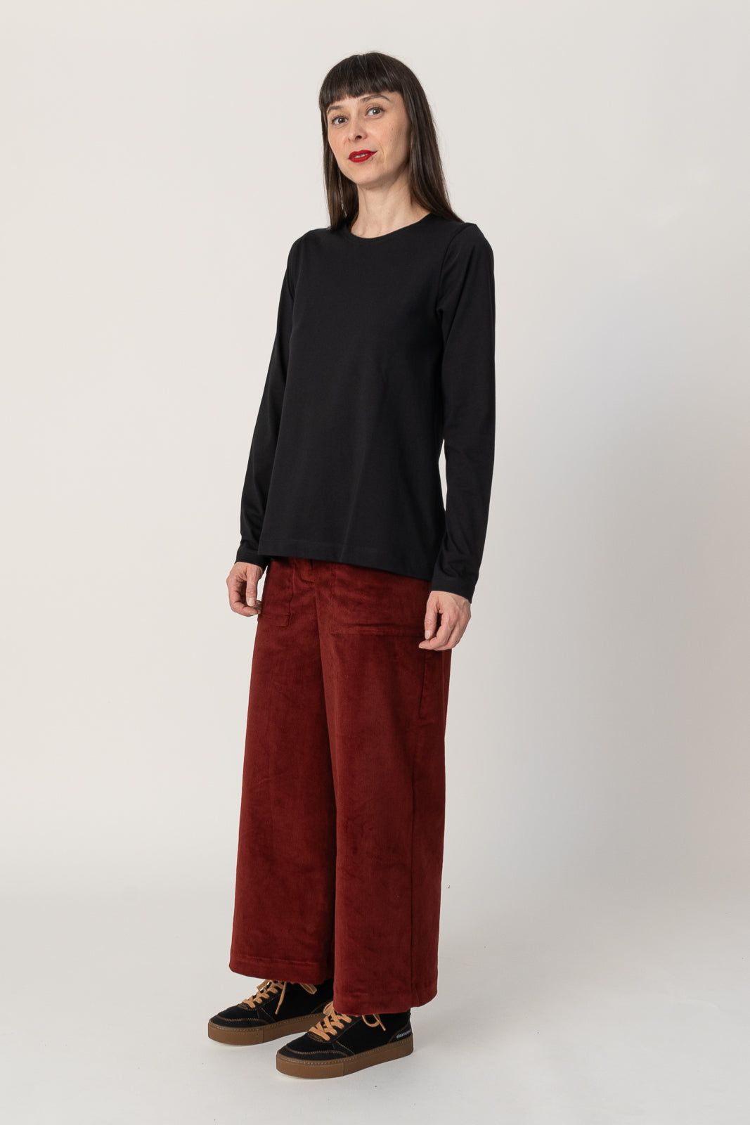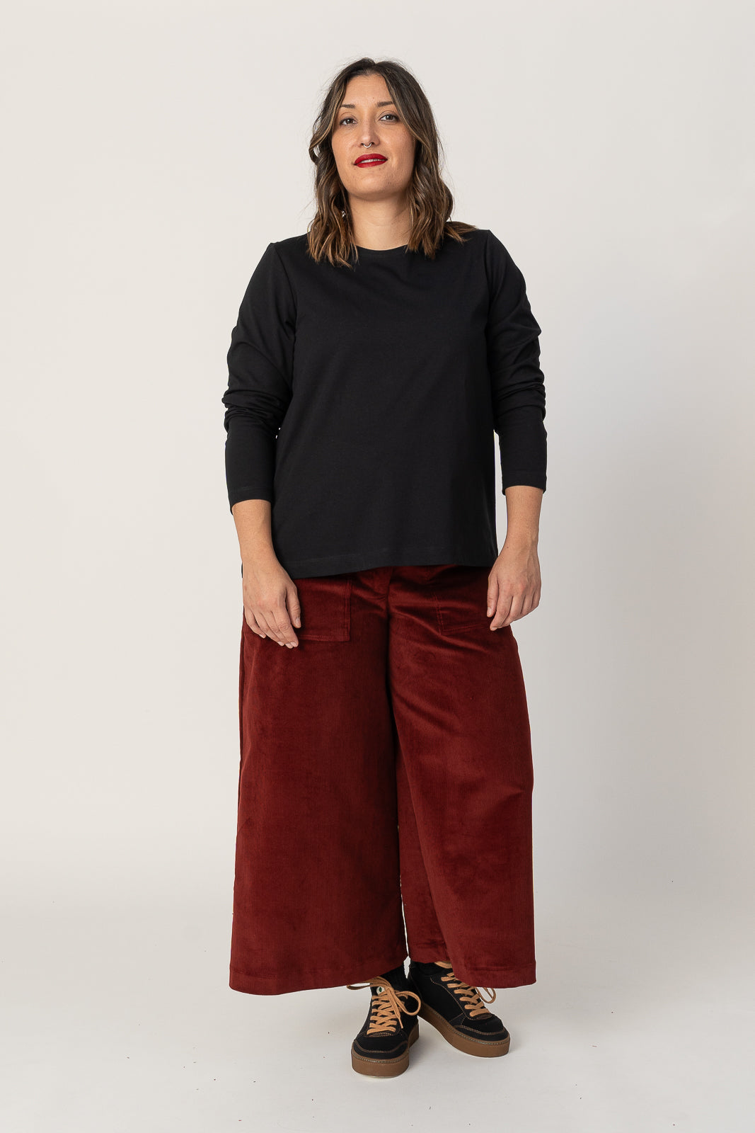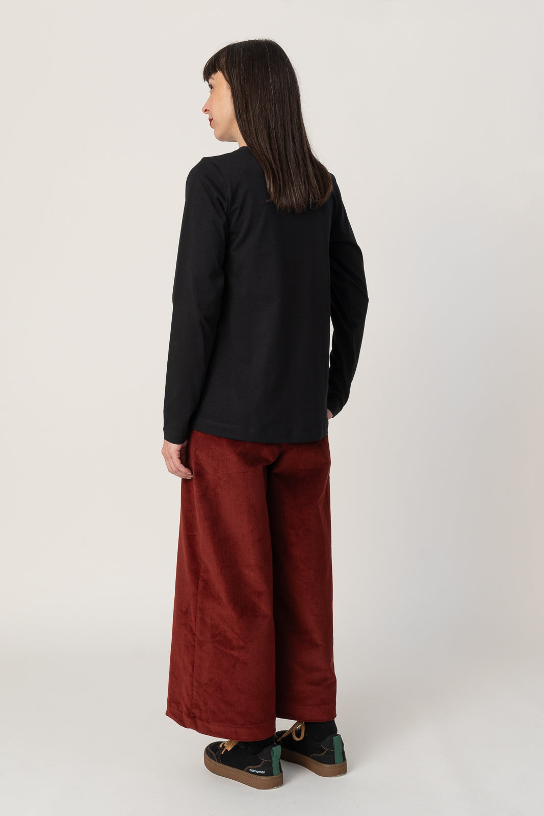 Camiseta evase de manga larga y cuello caja. Muy agradable y cómodo de llevar. Diseñado por Elisa Muresan. Patronaje y confección a mano en Zaragoza en nuestro propio taller.