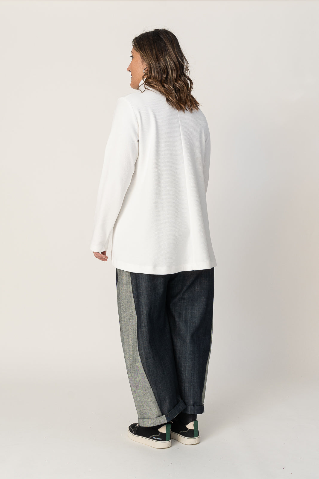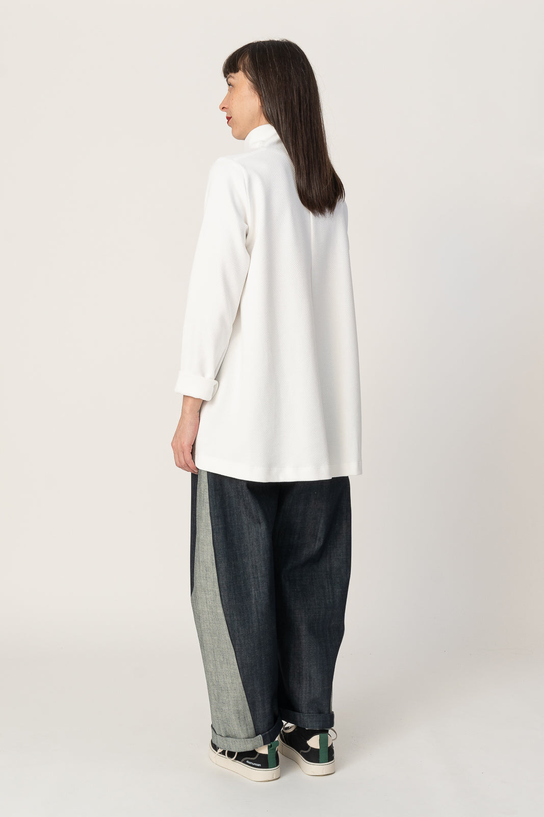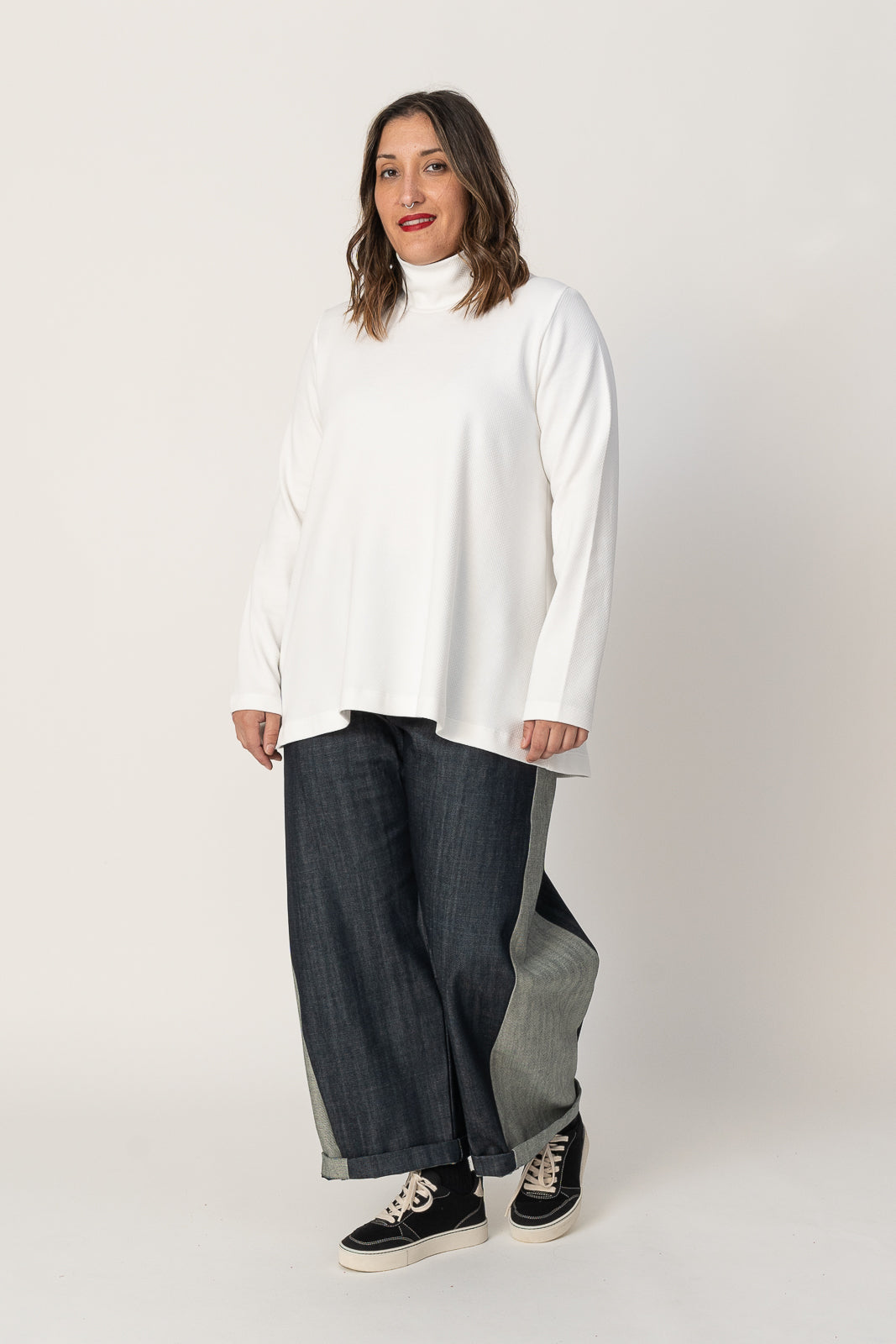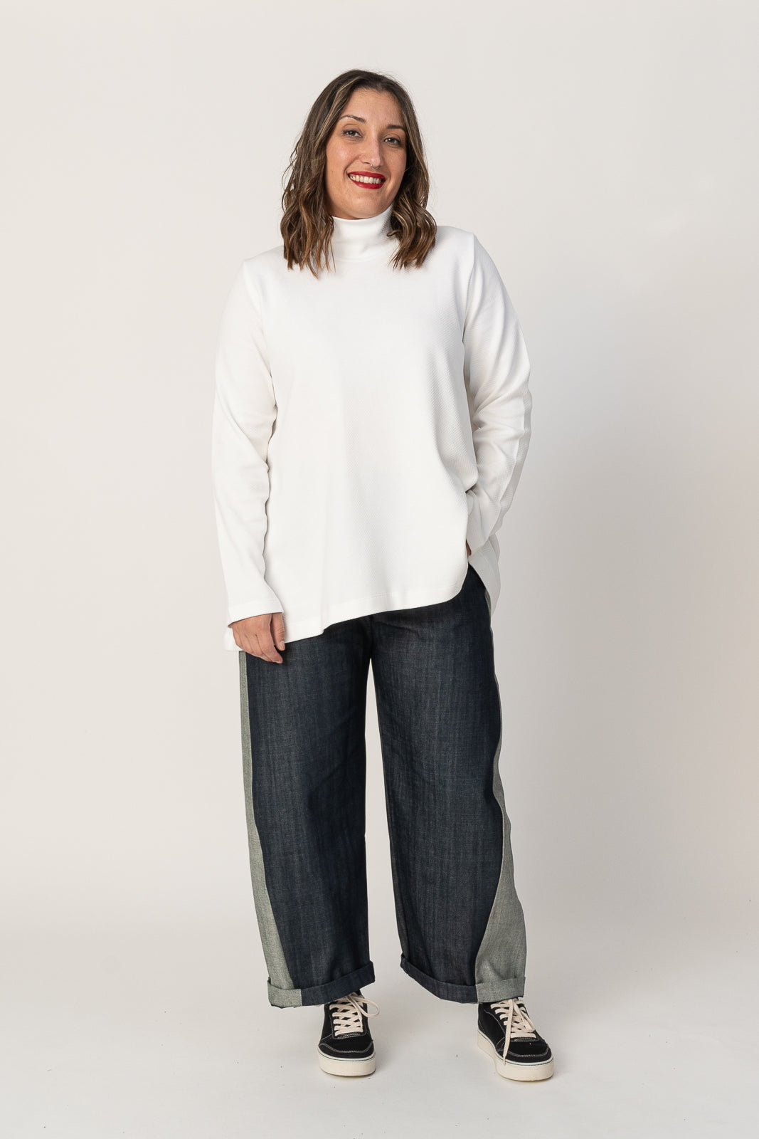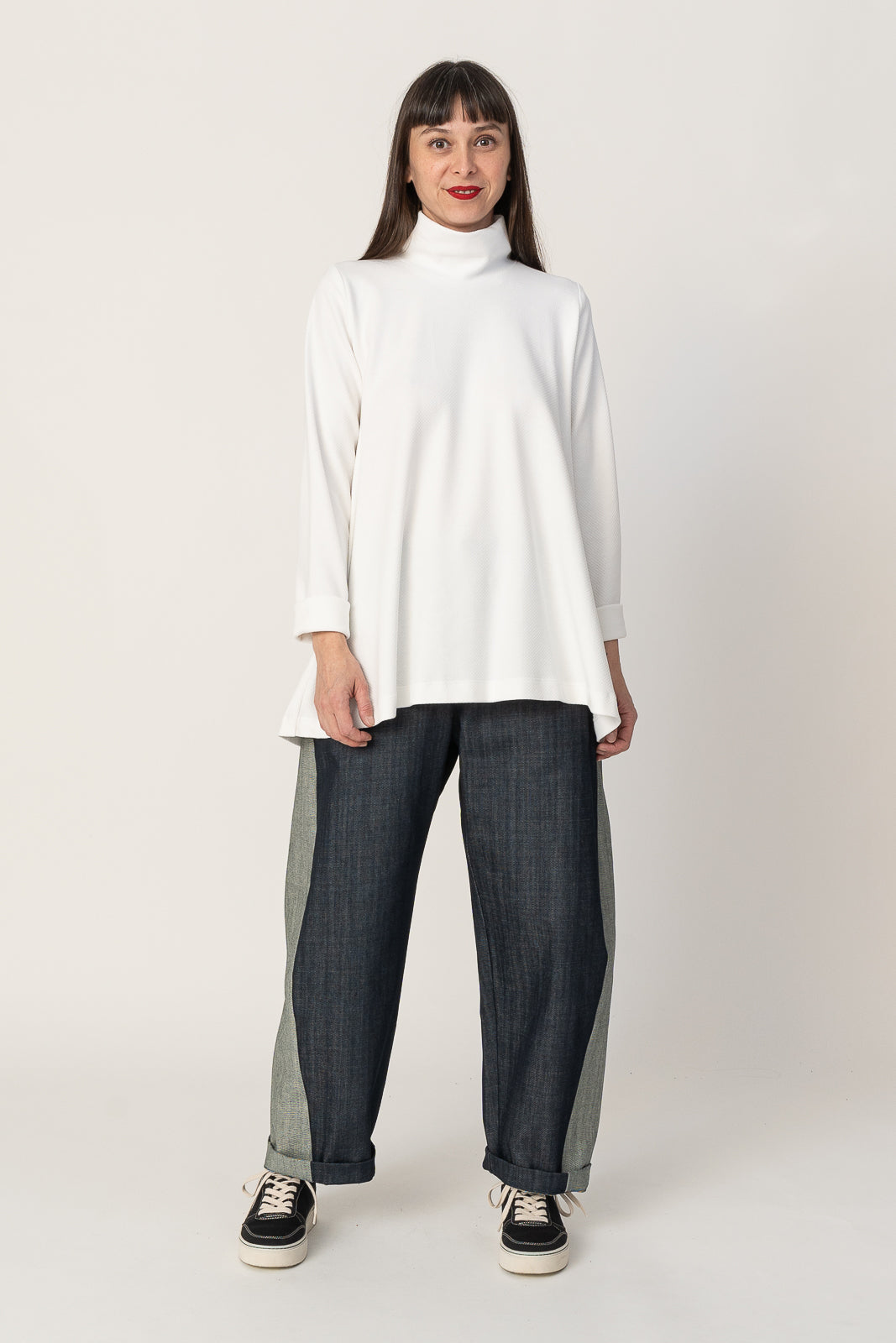 Jersey de capa de cuello alto. Muy agradable y cómodo de llevar. Diseñado por Elisa Muresan. Patronaje y confección a mano en Zaragoza en nuestro propio taller.