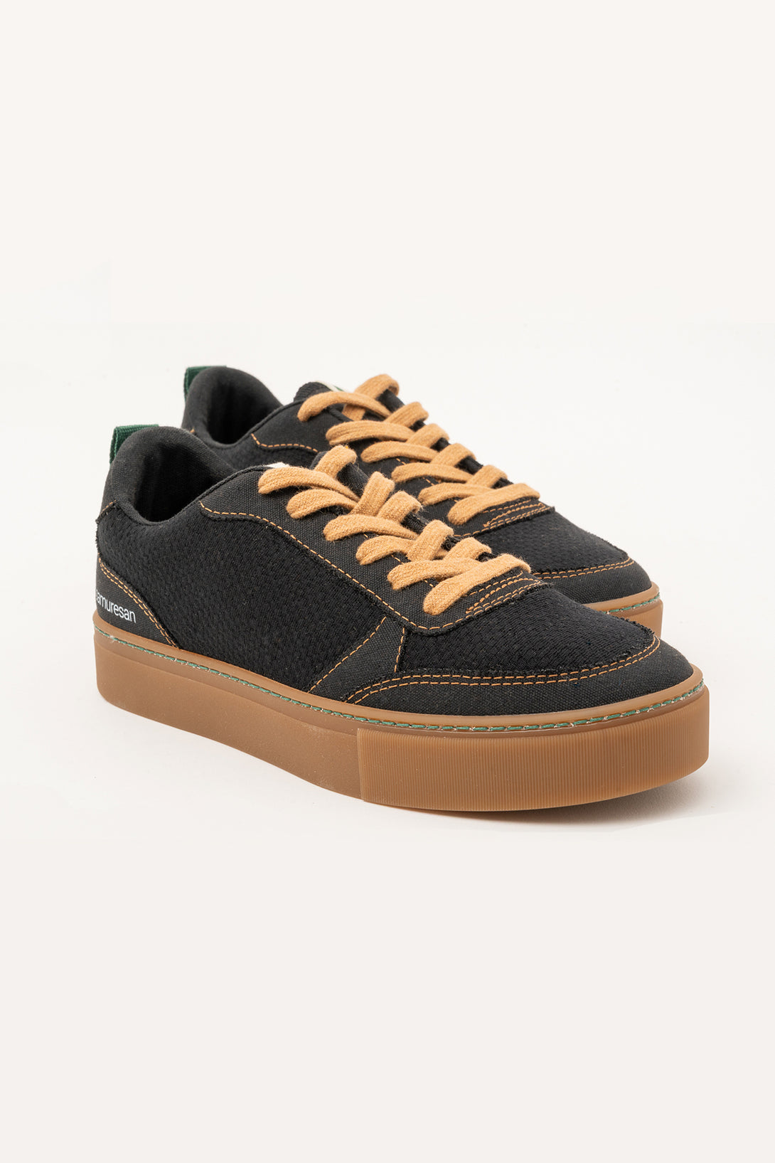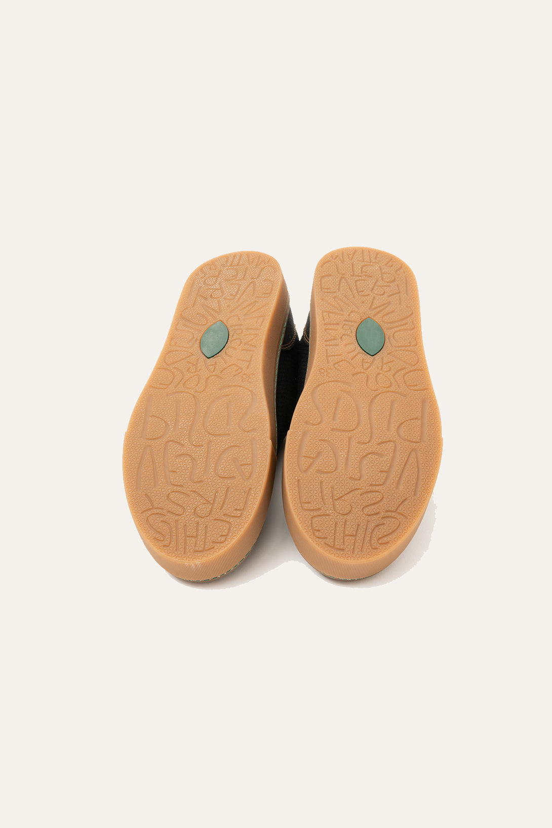 • Comp: Forro: 100% algodón reciclado certificado (GRS). Plantilla: 100% PU reciclado + corcho natural. Suela: 90% TPU reciclado certificado (GRS)