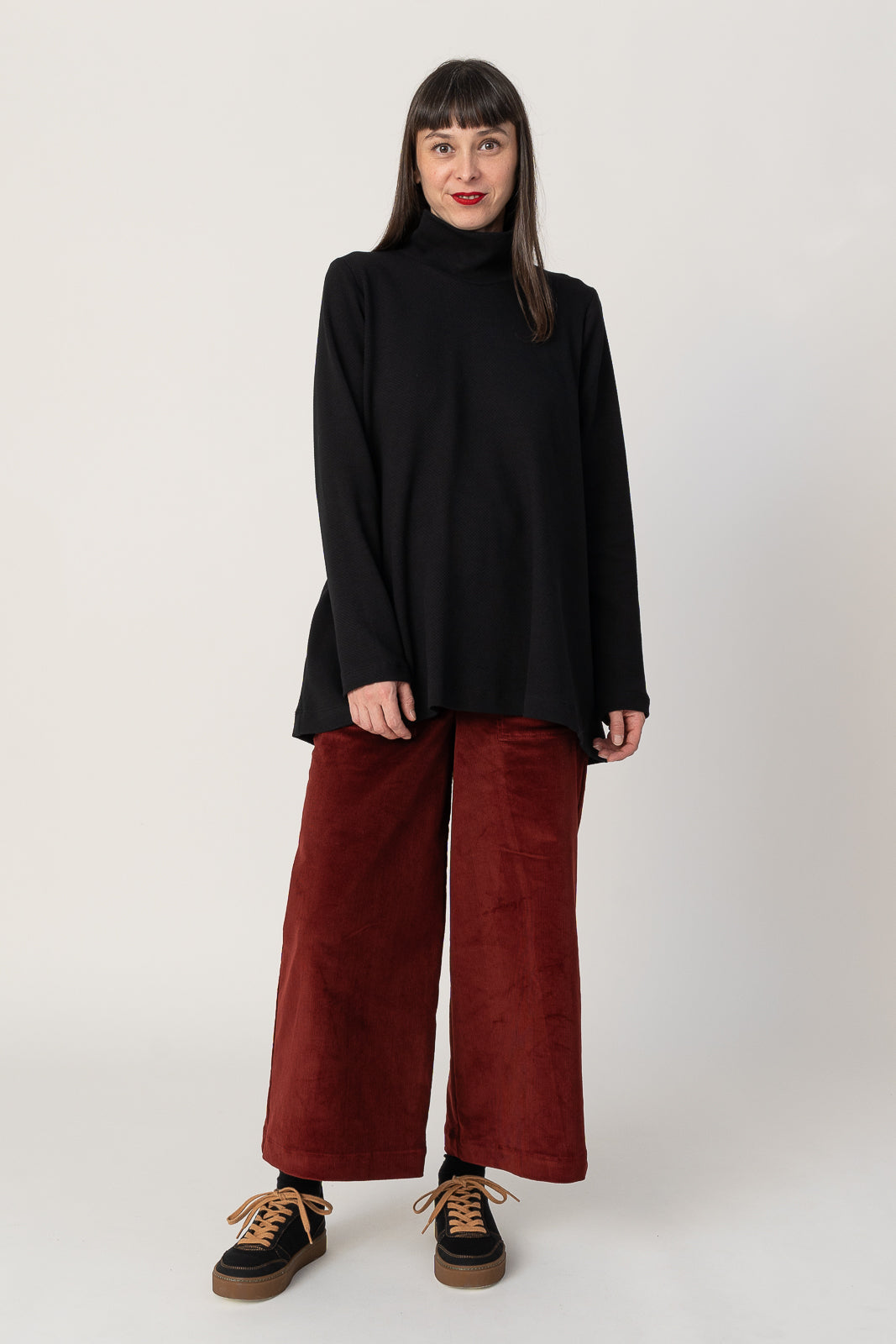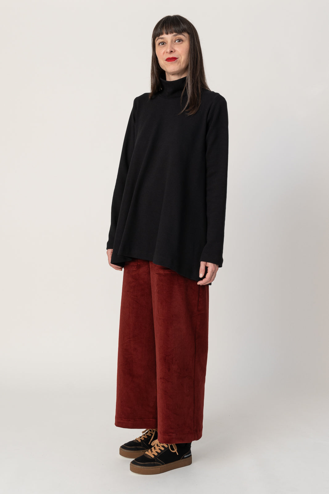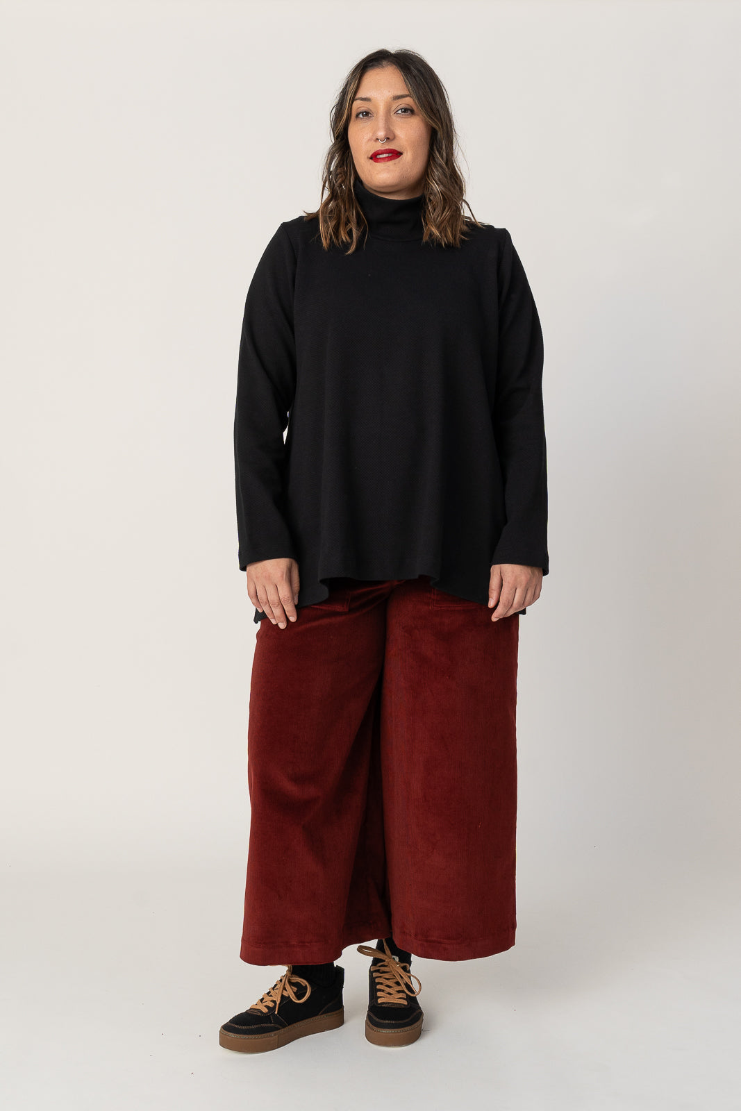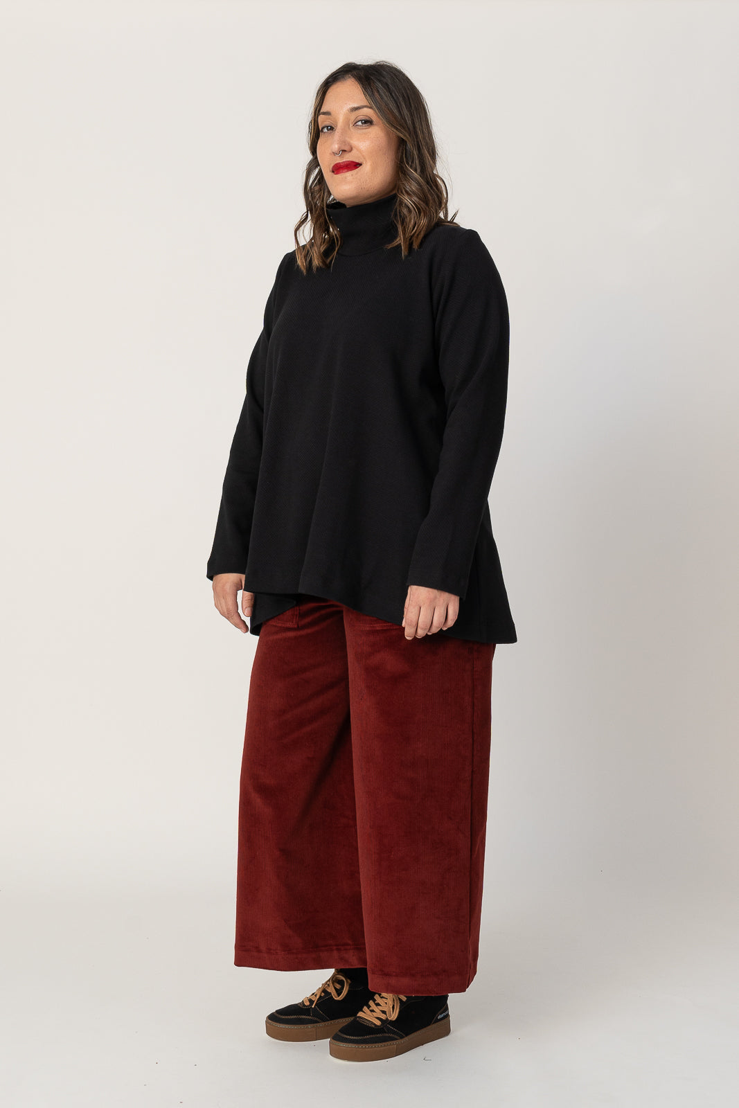 Jersey de capa de cuello alto. Muy agradable y cómodo de llevar. Diseñado por Elisa Muresan. Patronaje y confección a mano en Zaragoza en nuestro propio taller.