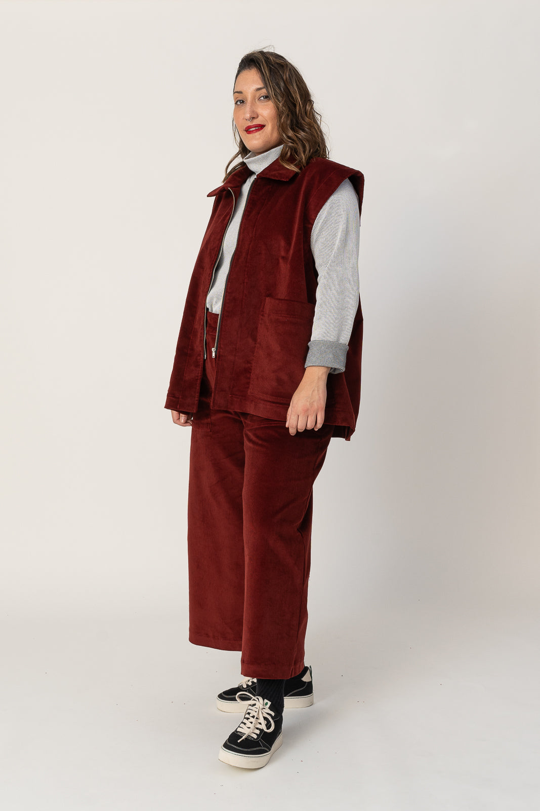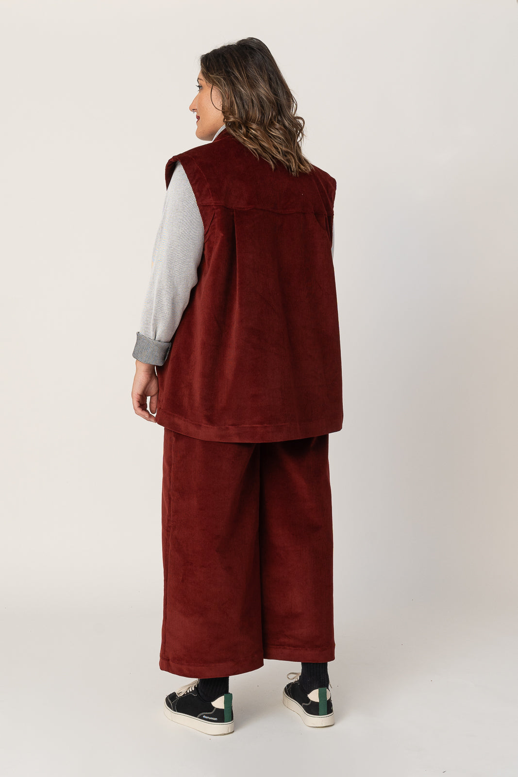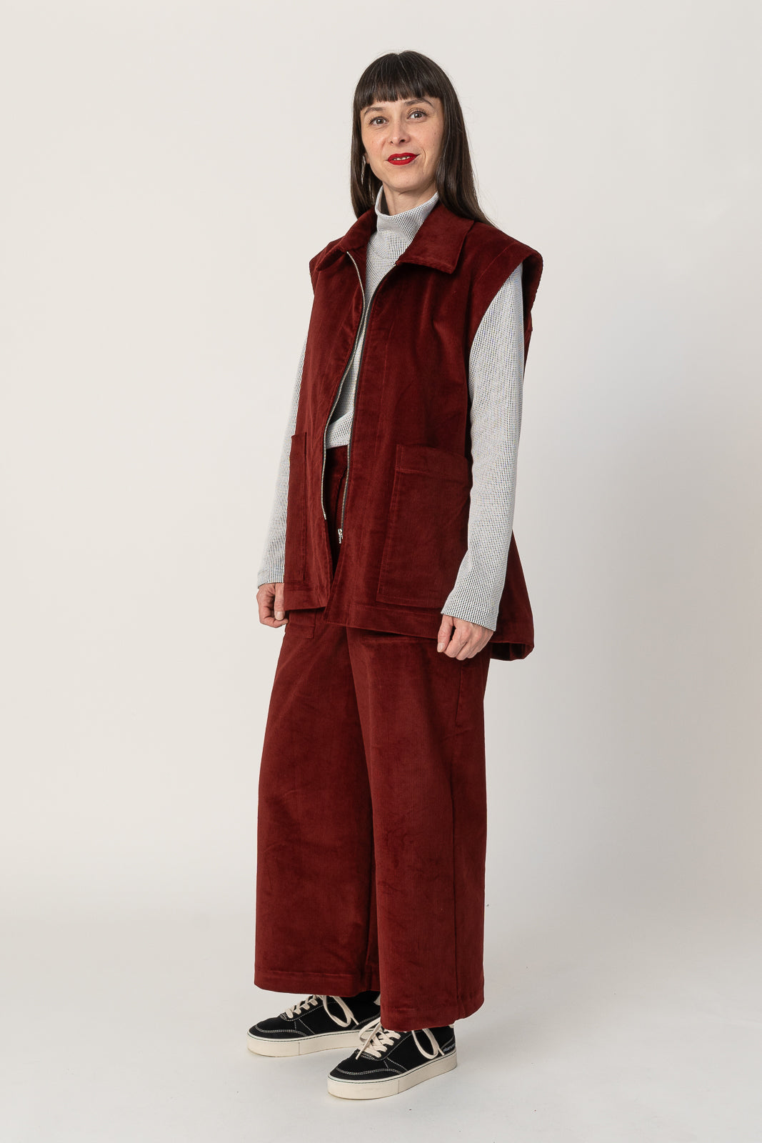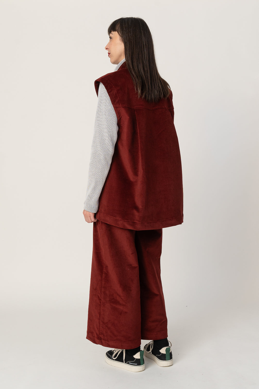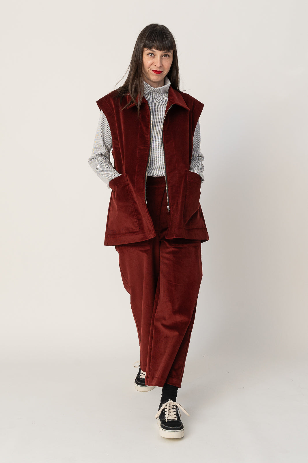 Chaleco over con cierre de cremallera y bolsillos parche. Muy agradable y cómodo de llevar. Diseñado por Elisa Muresan. Patronaje y confección a mano en Zaragoza en nuestro propio taller.