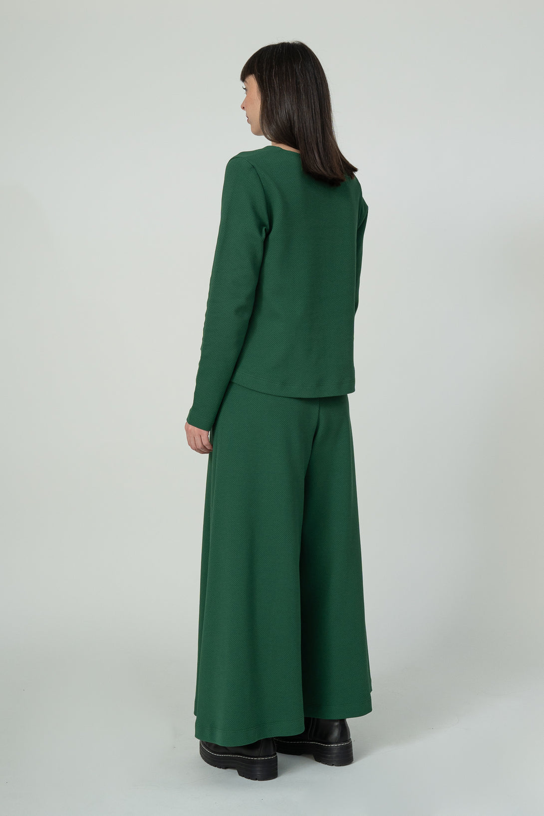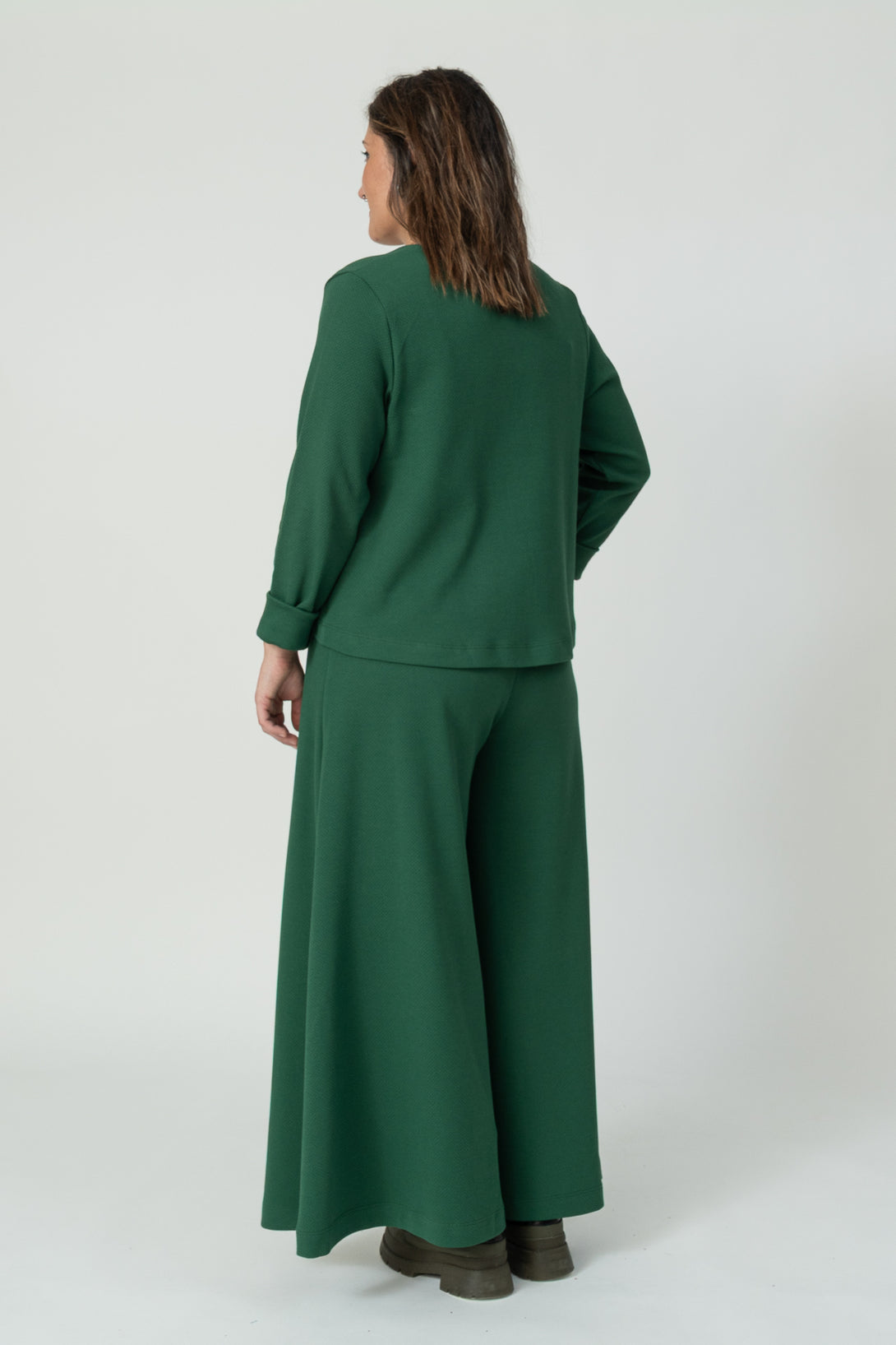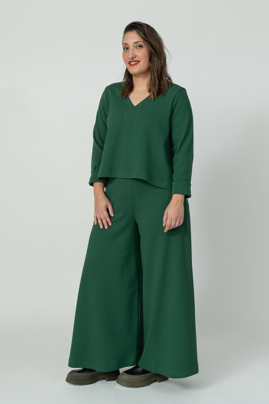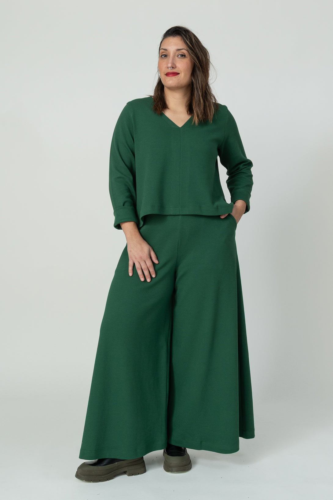Jersey evase de escote pico y manga larga. Muy agradable y cómodo de llevar. Diseñado por Elisa Muresan. Patronaje y confección a mano en Zaragoza en nuestro propio taller.