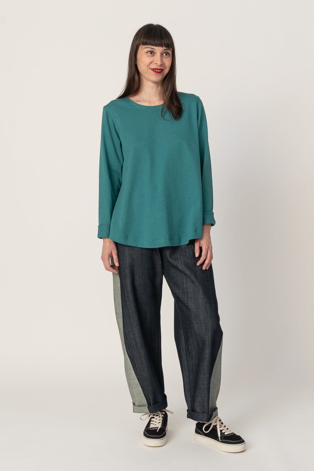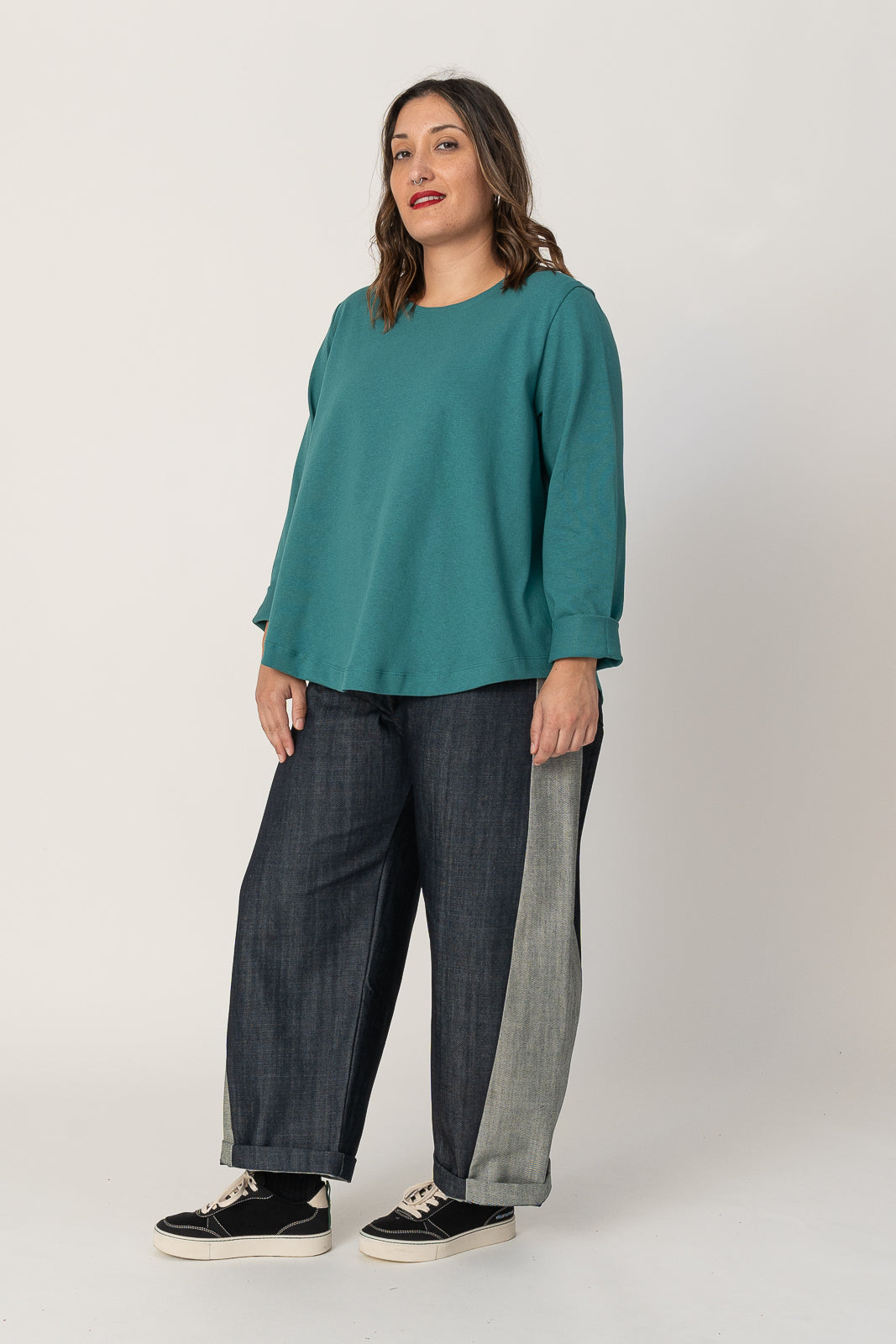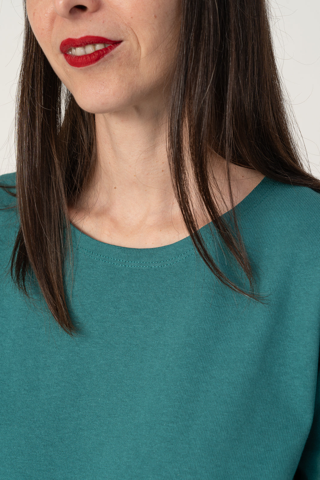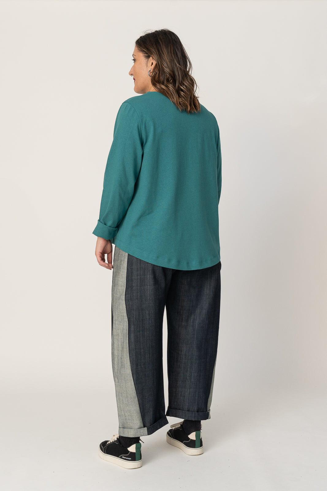 Jersey evase de cuello caja y bajo tipo camisero. Muy agradable y cómodo de llevar. Diseñado por Elisa Muresan. Patronaje y confección a mano en Zaragoza en nuestro propio taller.