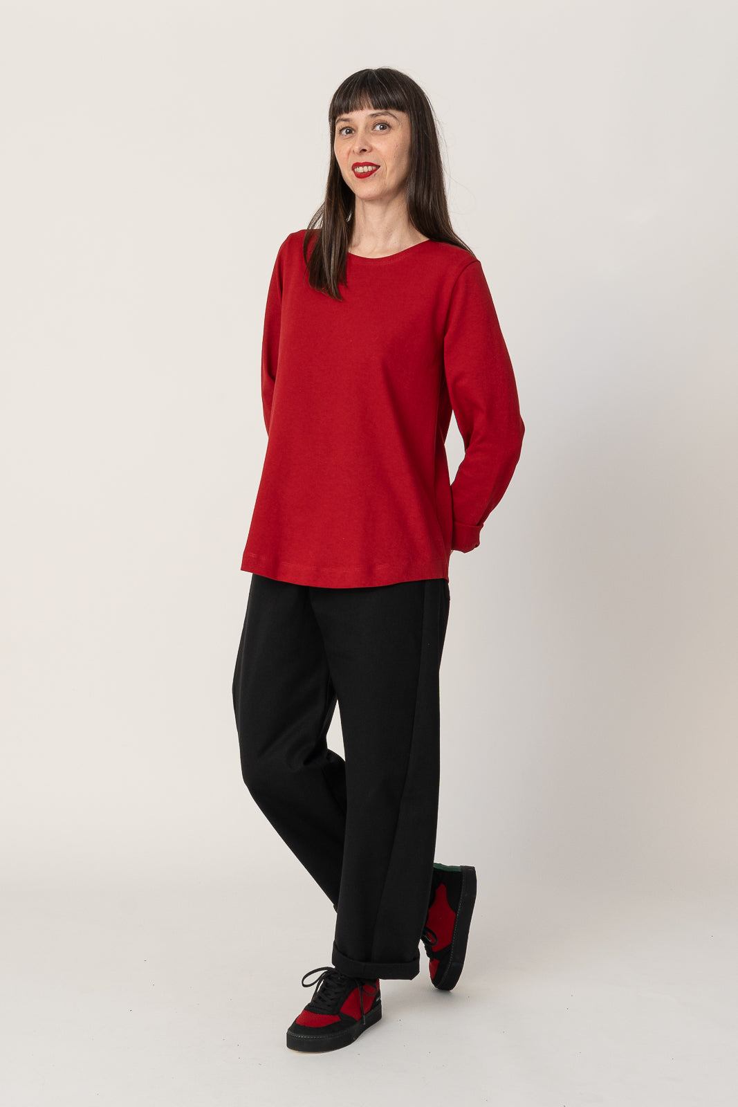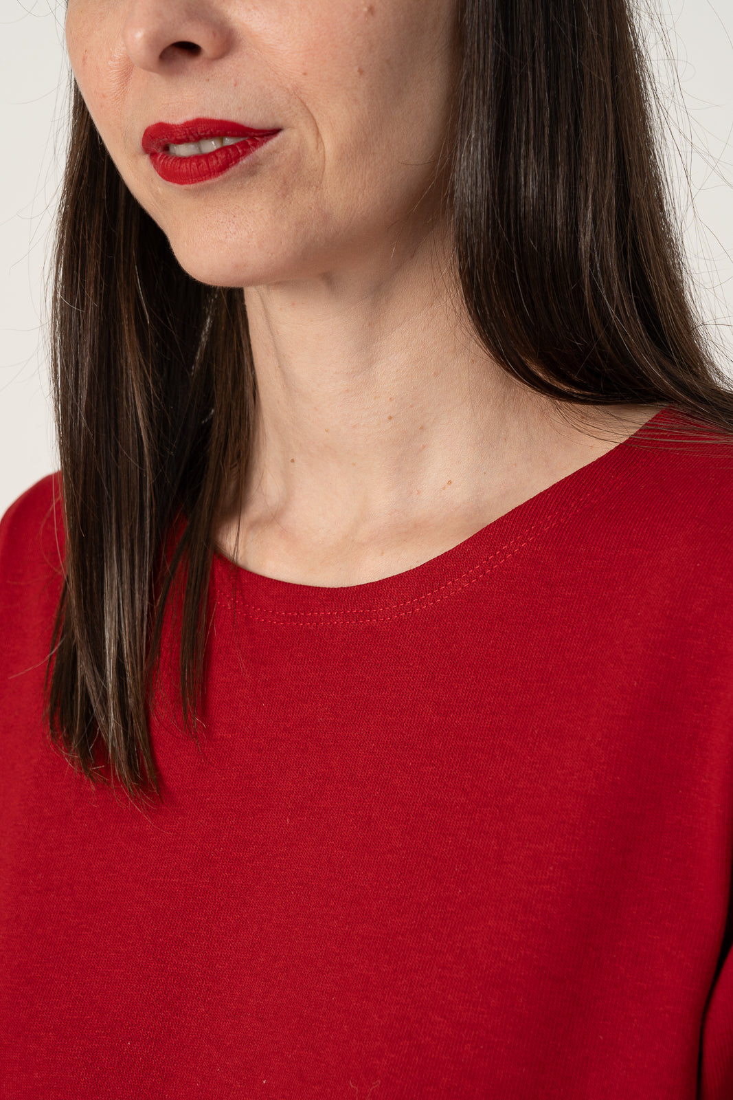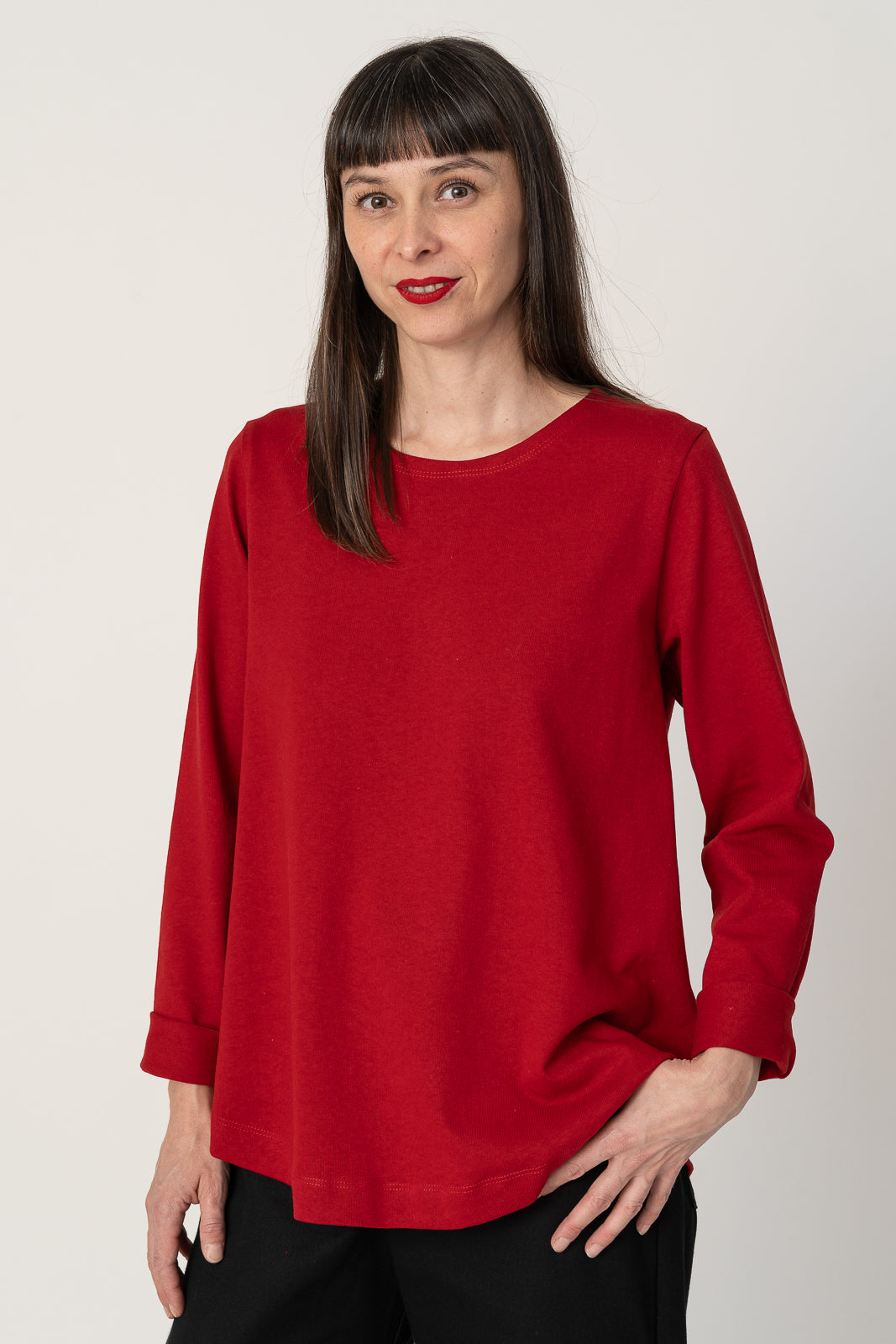 Jersey evase de cuello caja y bajo tipo camisero. Muy agradable y cómodo de llevar. Diseñado por Elisa Muresan. Patronaje y confección a mano en Zaragoza en nuestro propio taller.