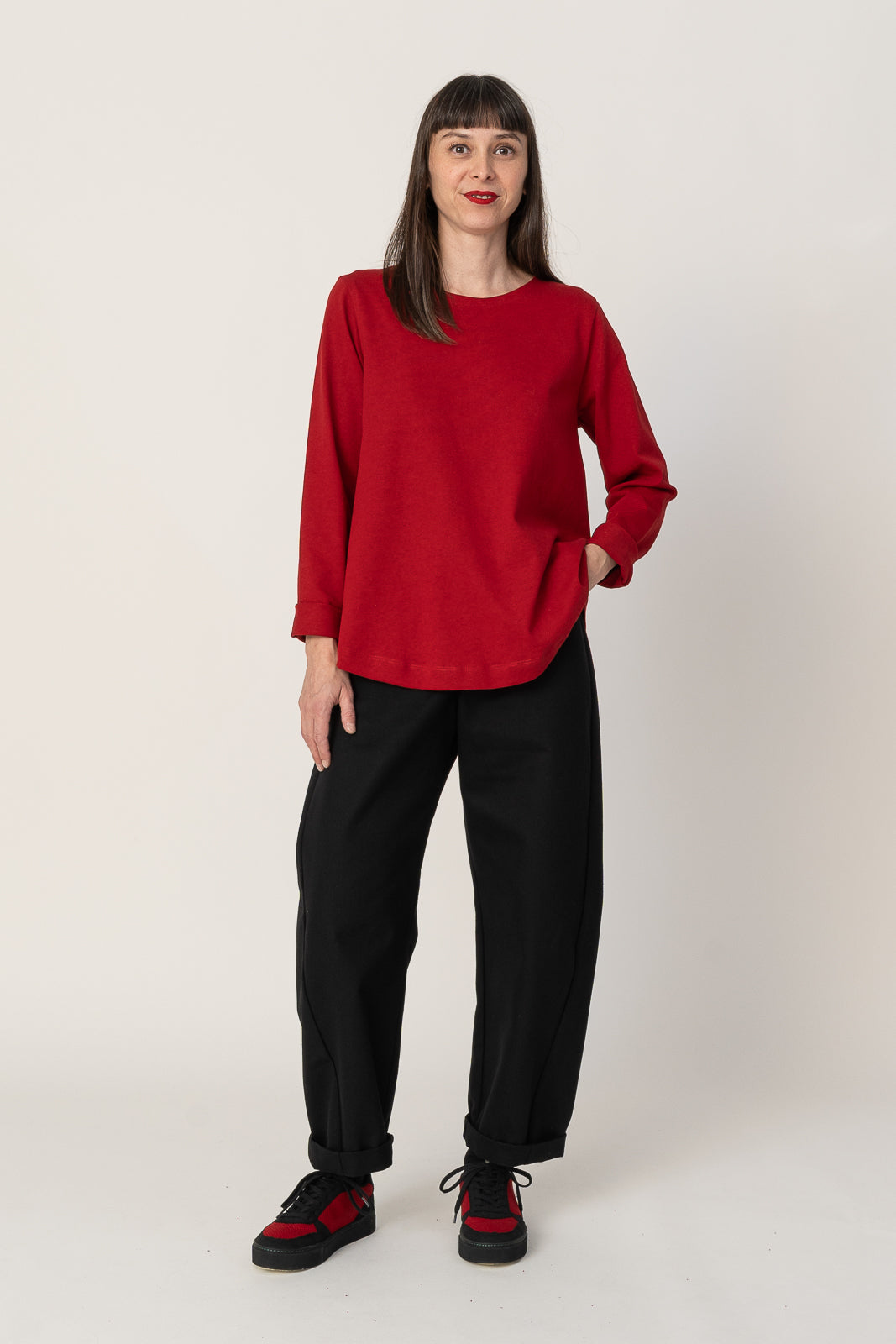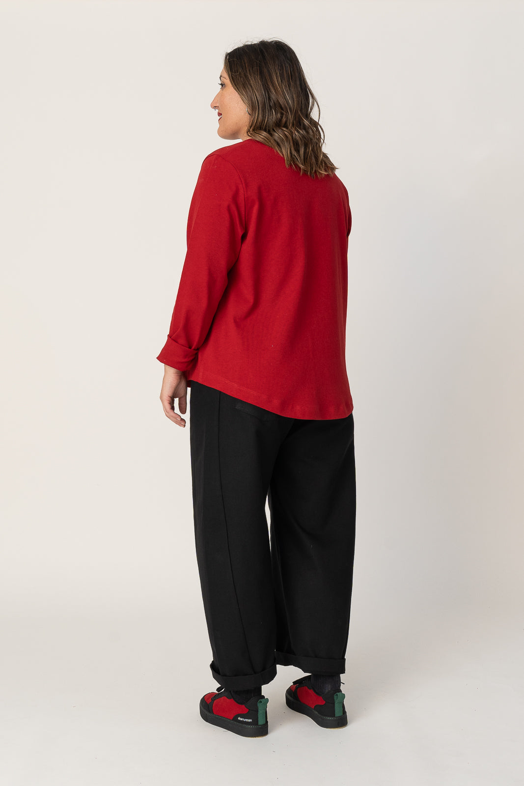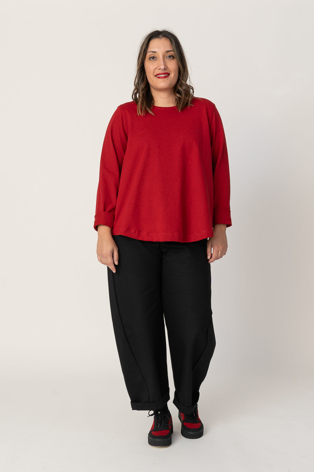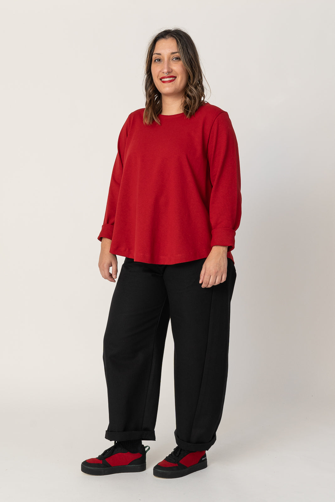 Jersey evase de cuello caja y bajo tipo camisero. Muy agradable y cómodo de llevar. Diseñado por Elisa Muresan. Patronaje y confección a mano en Zaragoza en nuestro propio taller.