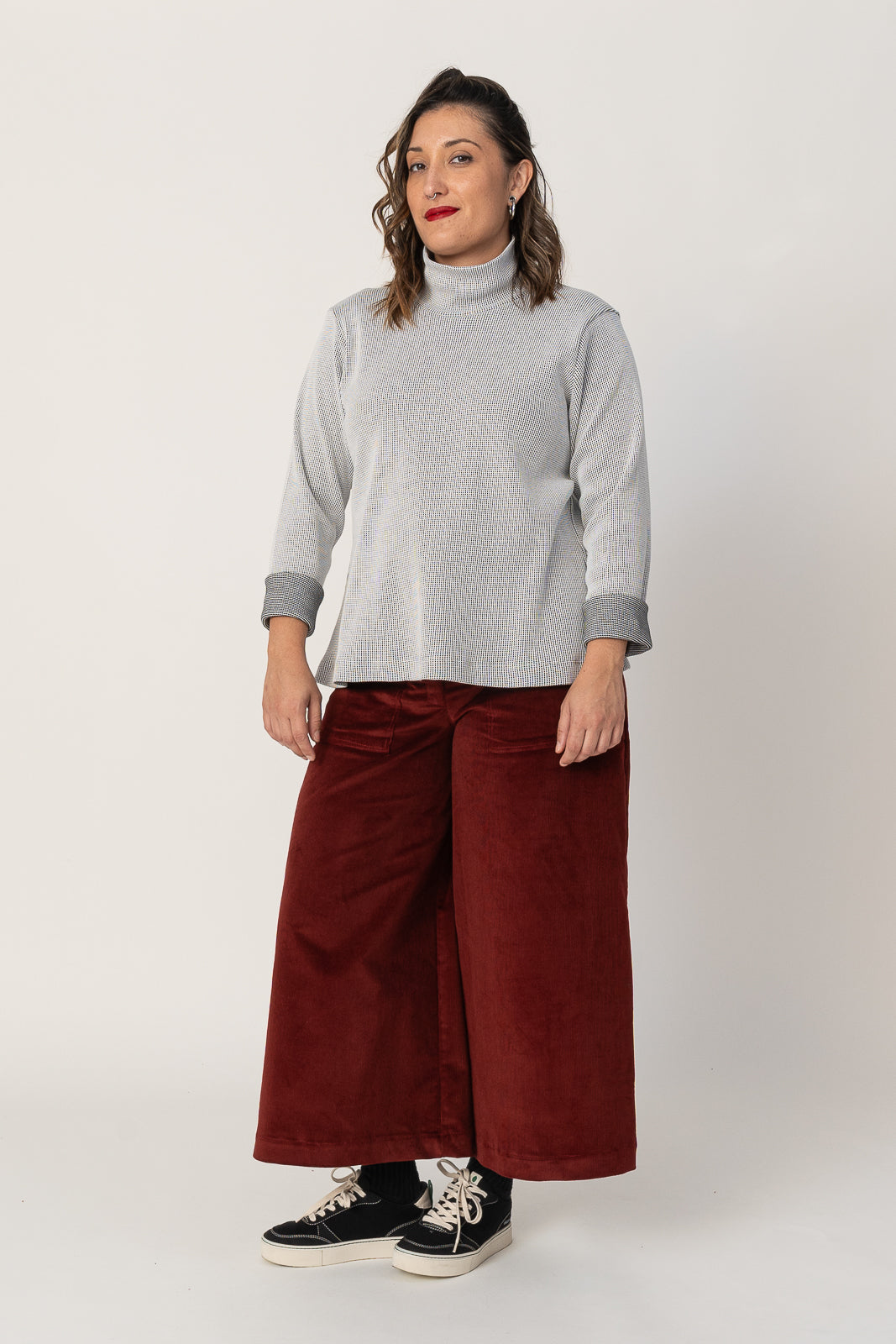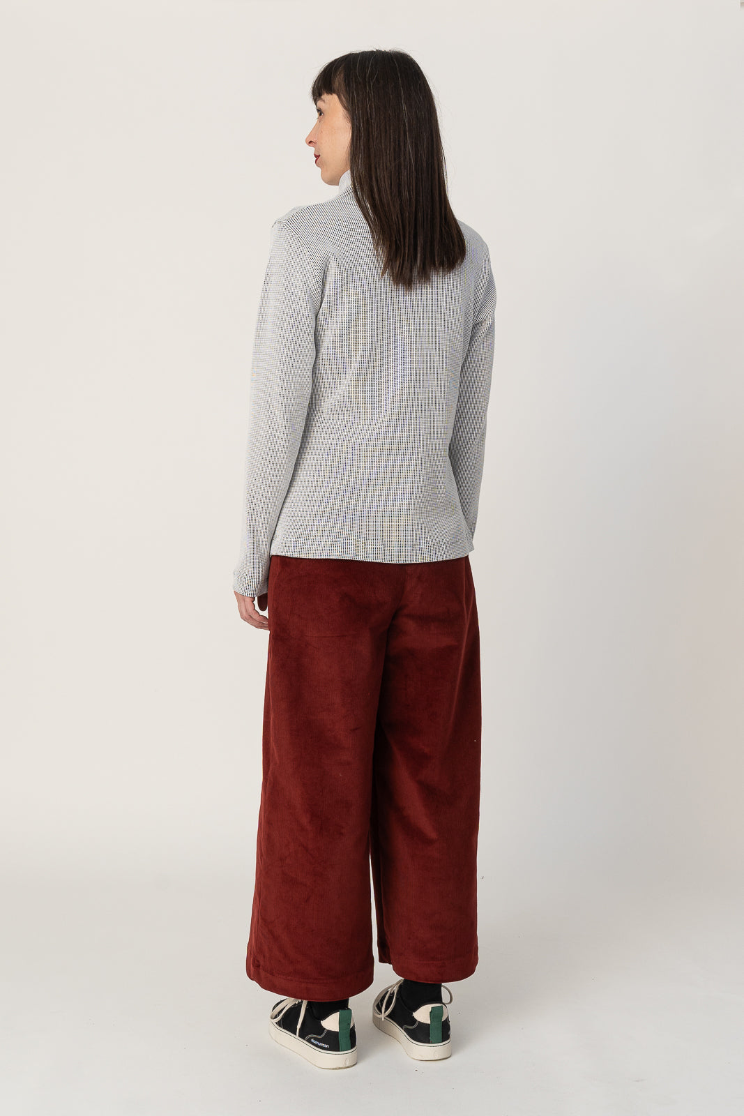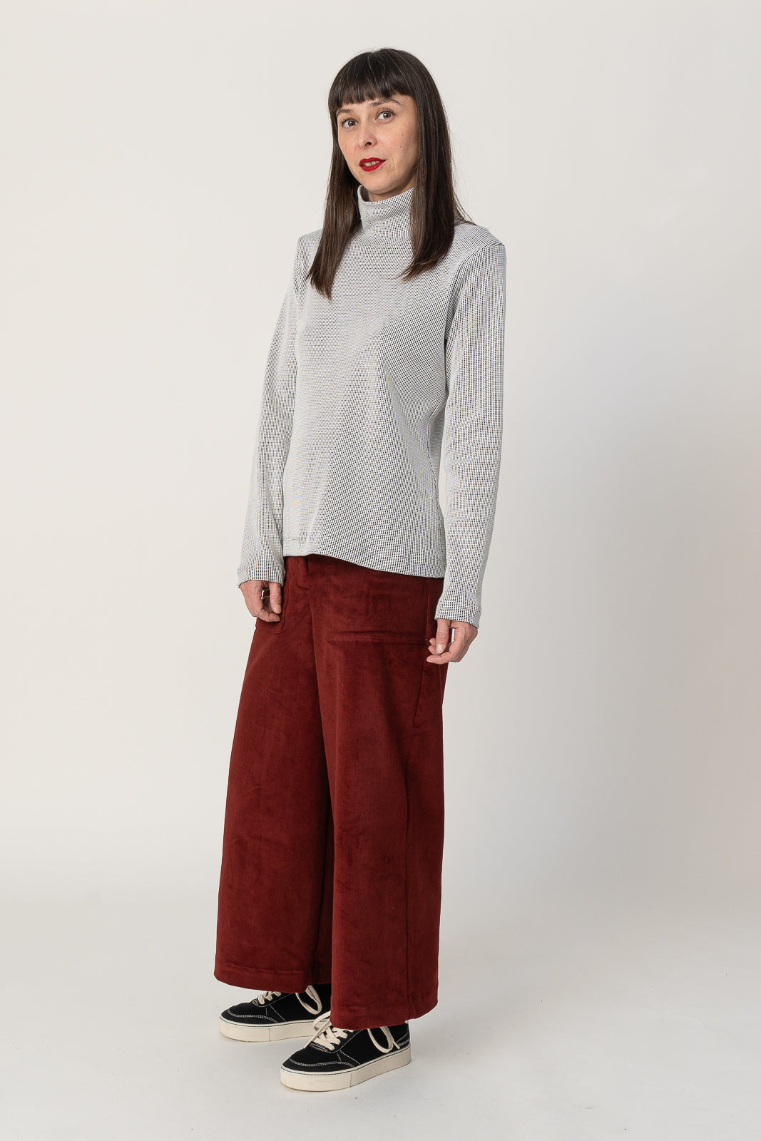 Jersey encajado de cuello alto. Muy agradable y cómodo de llevar. Diseñado por Elisa Muresan. Patronaje y confección a mano en Zaragoza en nuestro propio taller.