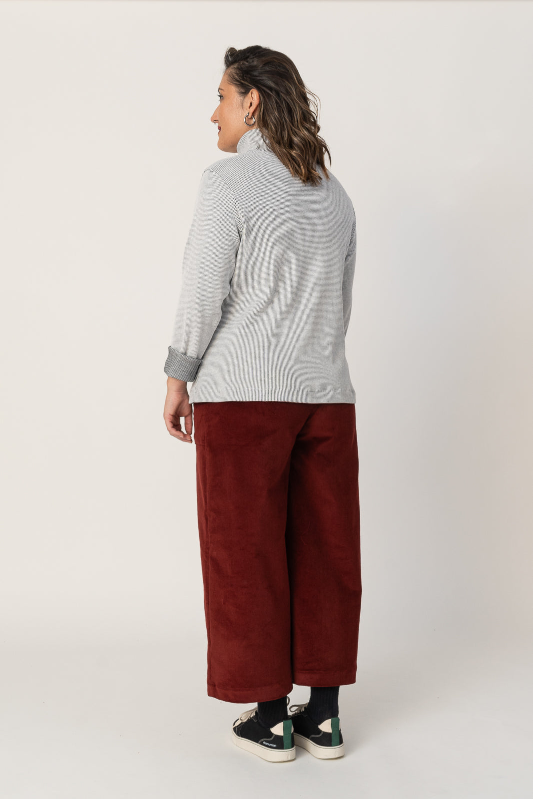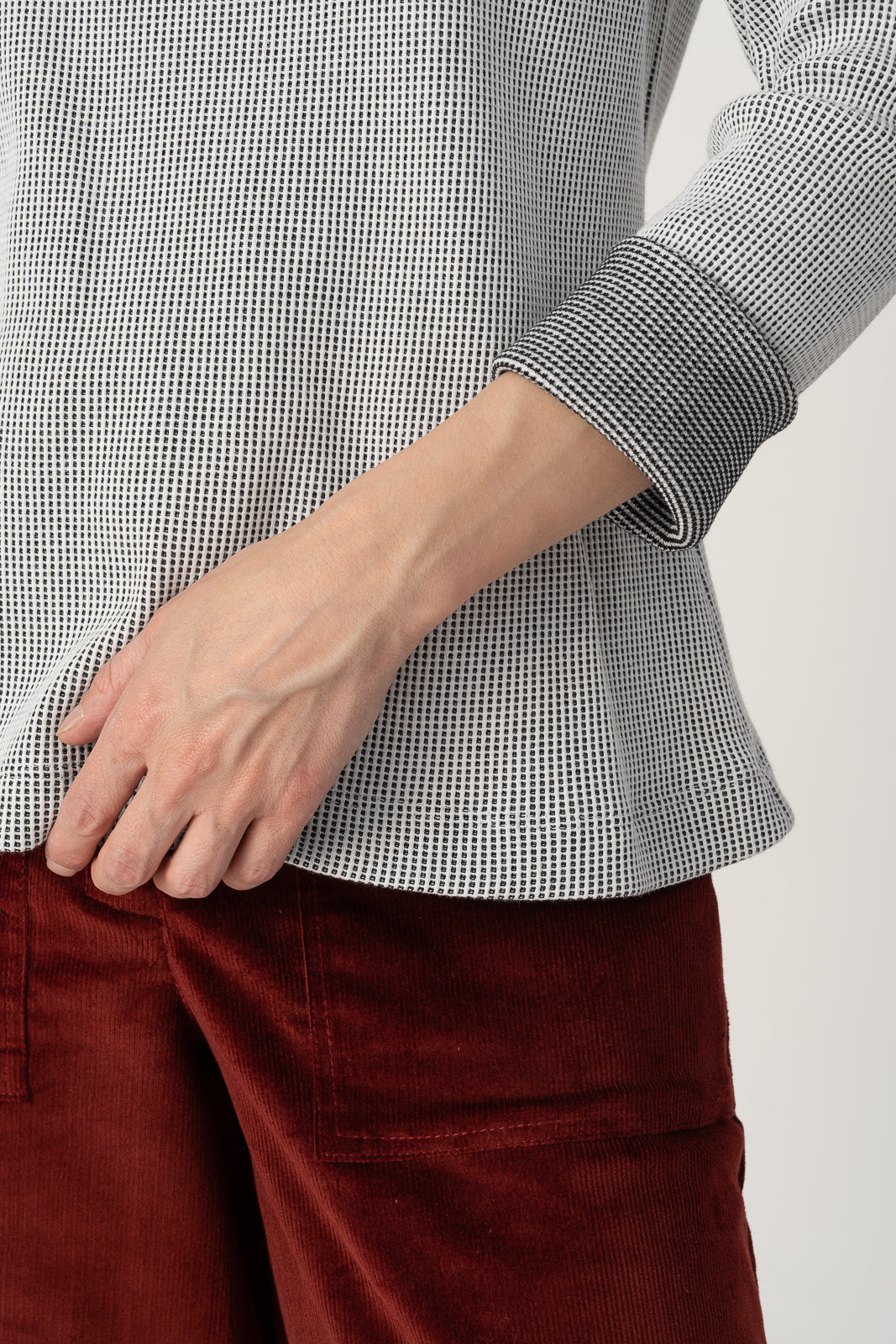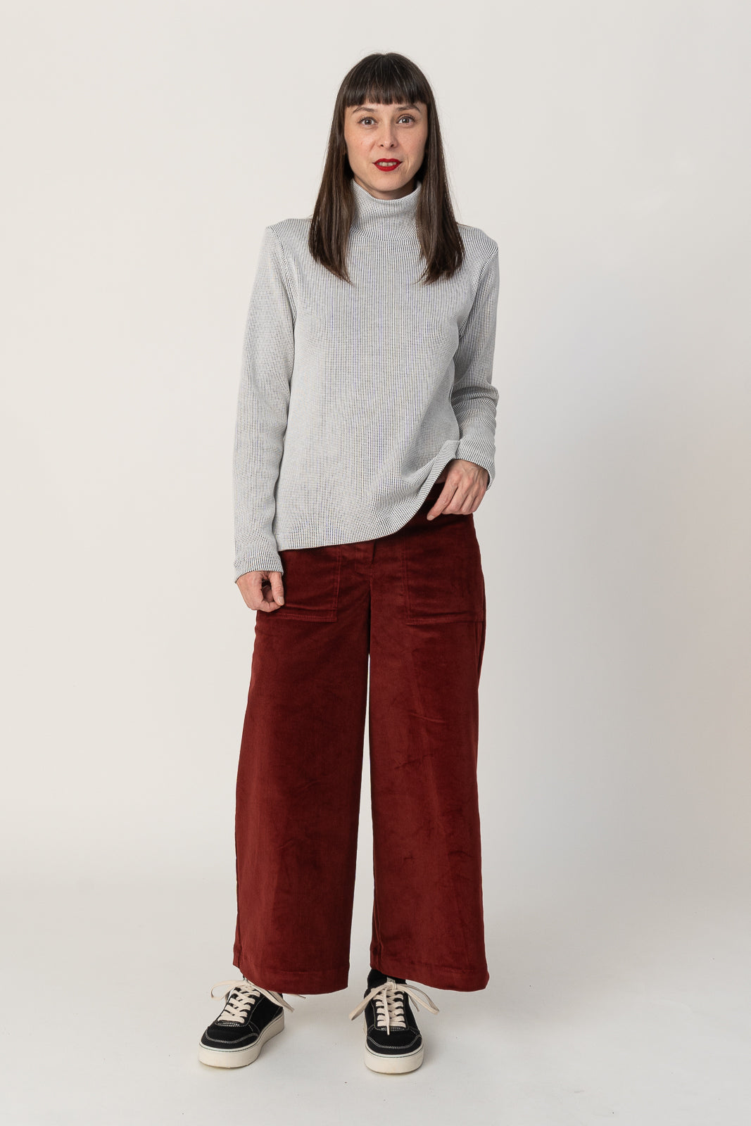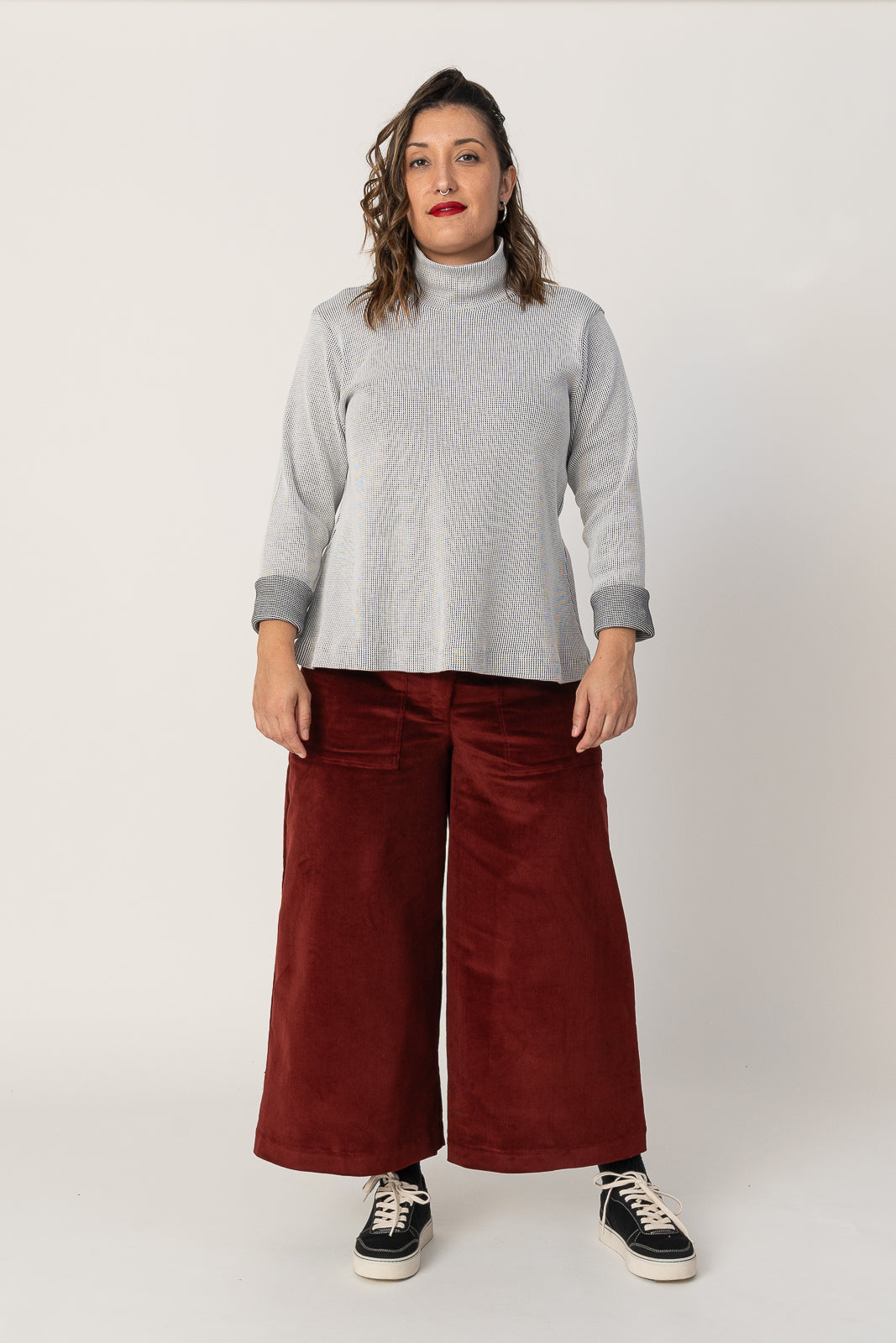 Jersey encajado de cuello alto. Muy agradable y cómodo de llevar. Diseñado por Elisa Muresan. Patronaje y confección a mano en Zaragoza en nuestro propio taller.