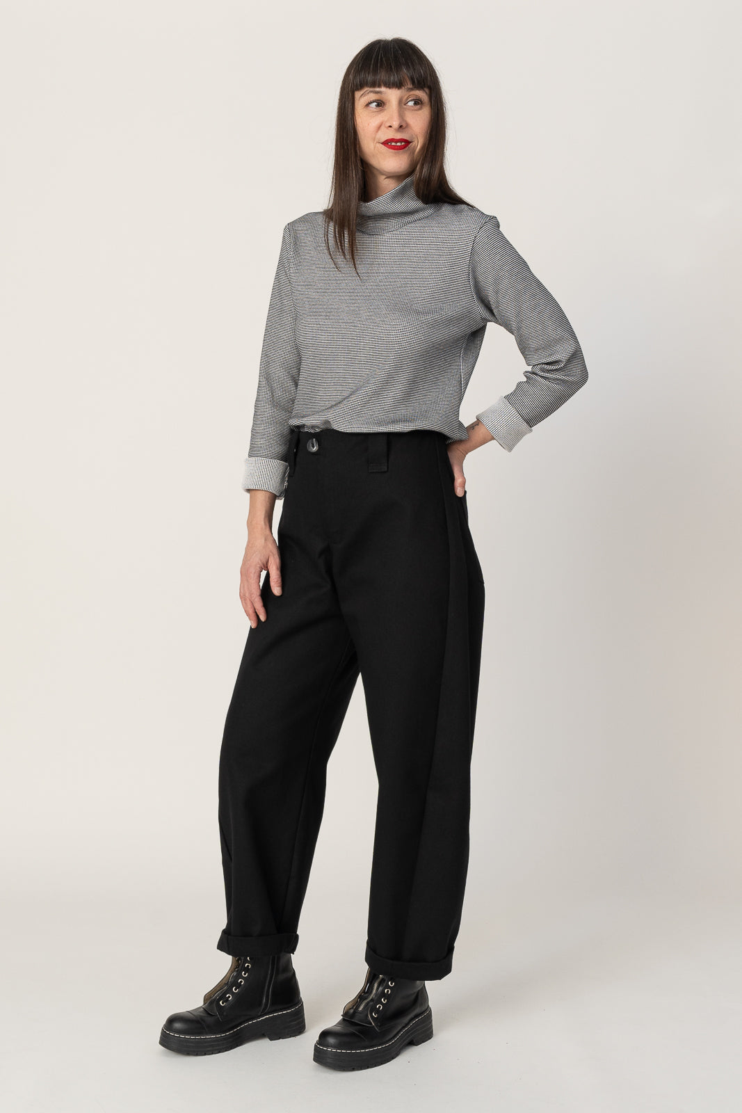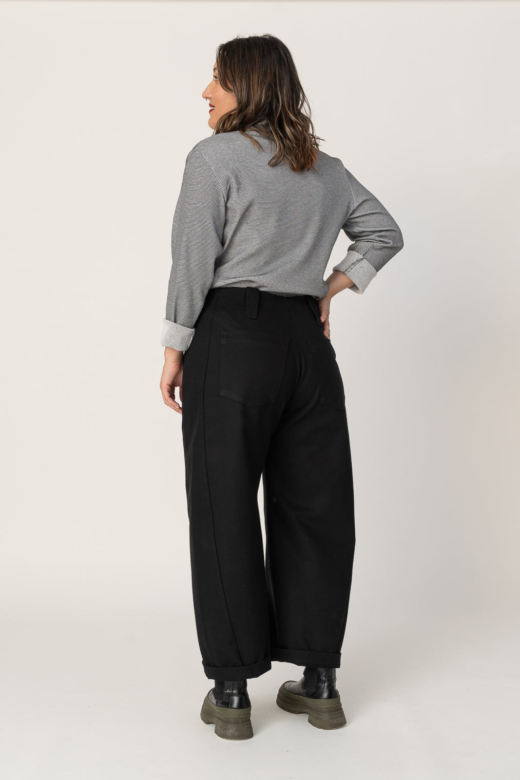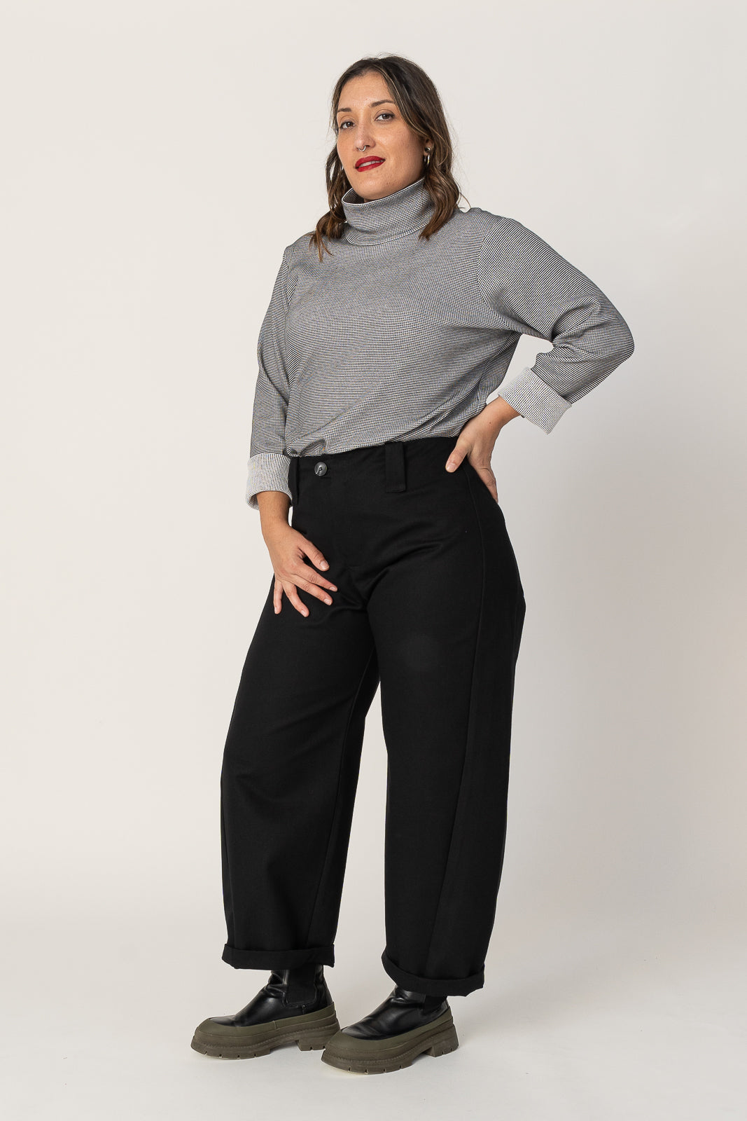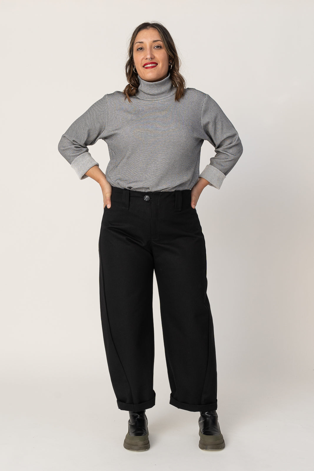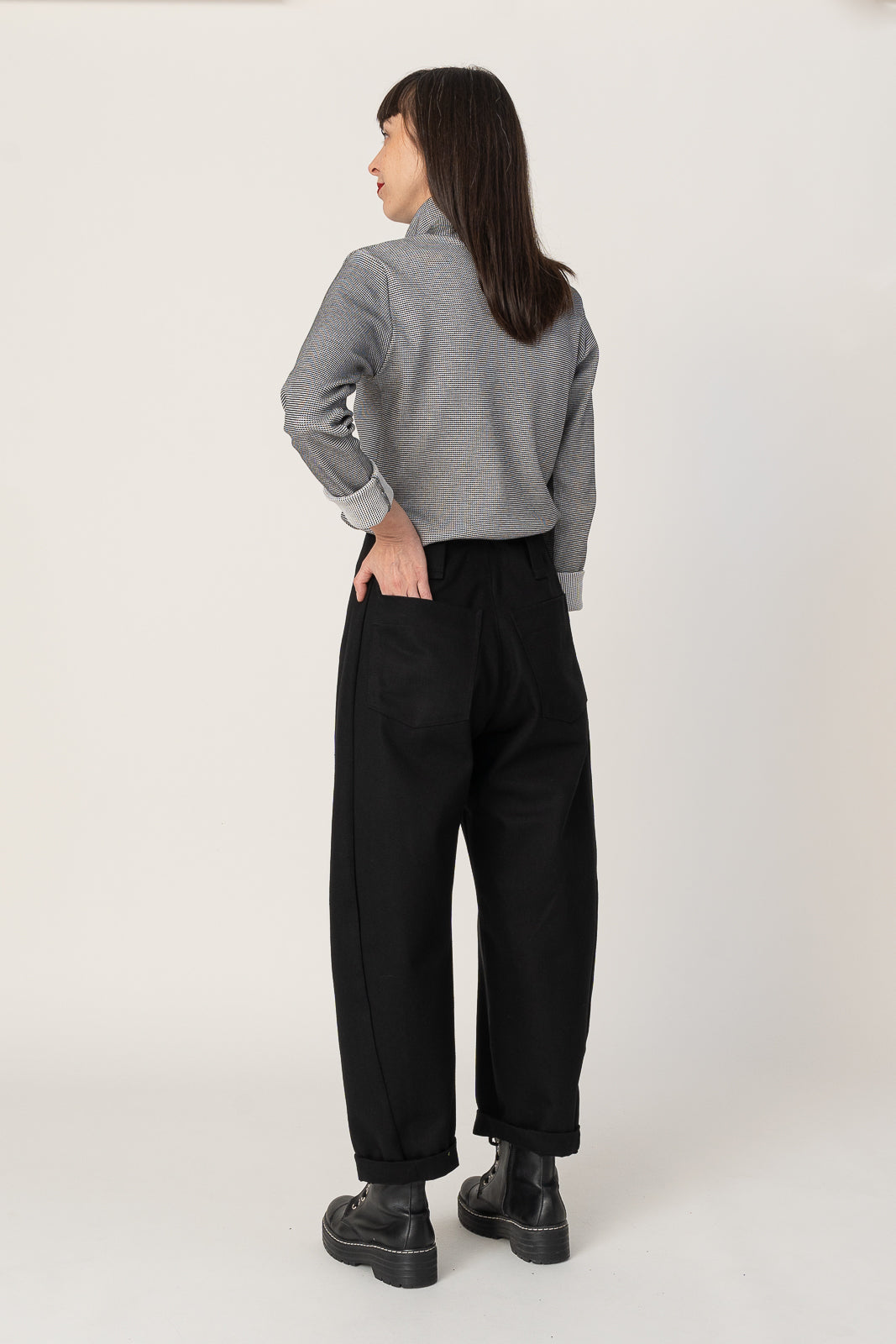 Pantalón con godet y bolsillos traseros. Muy agradable y cómodo de llevar. Diseñado por Elisa Muresan. Patronaje y confección a mano en Zaragoza en nuestro propio taller.