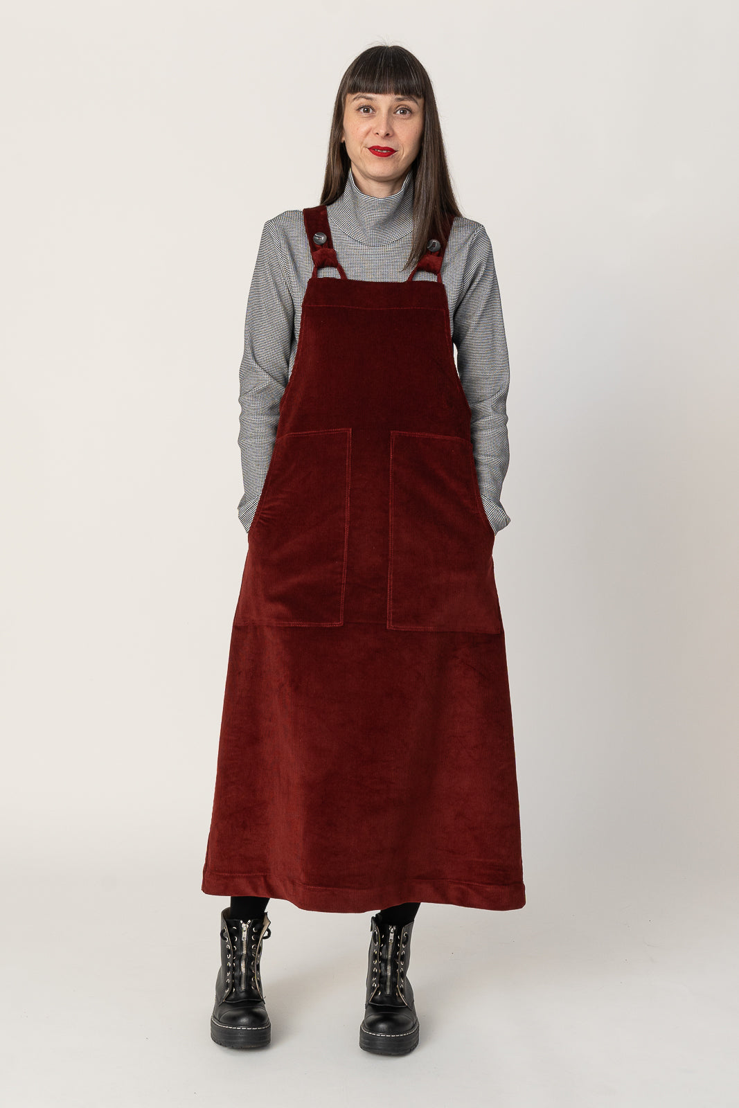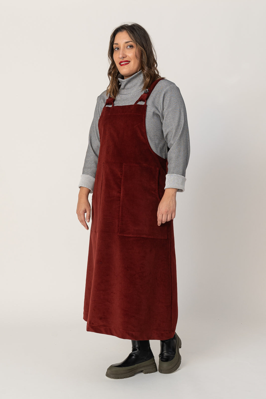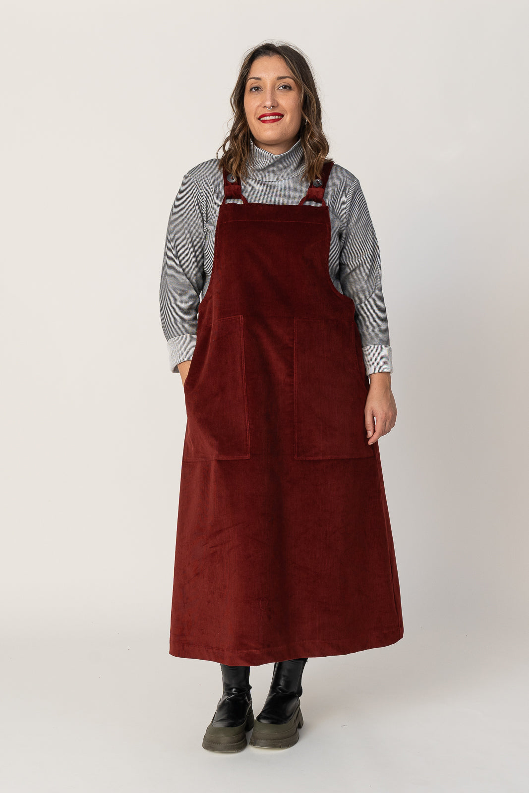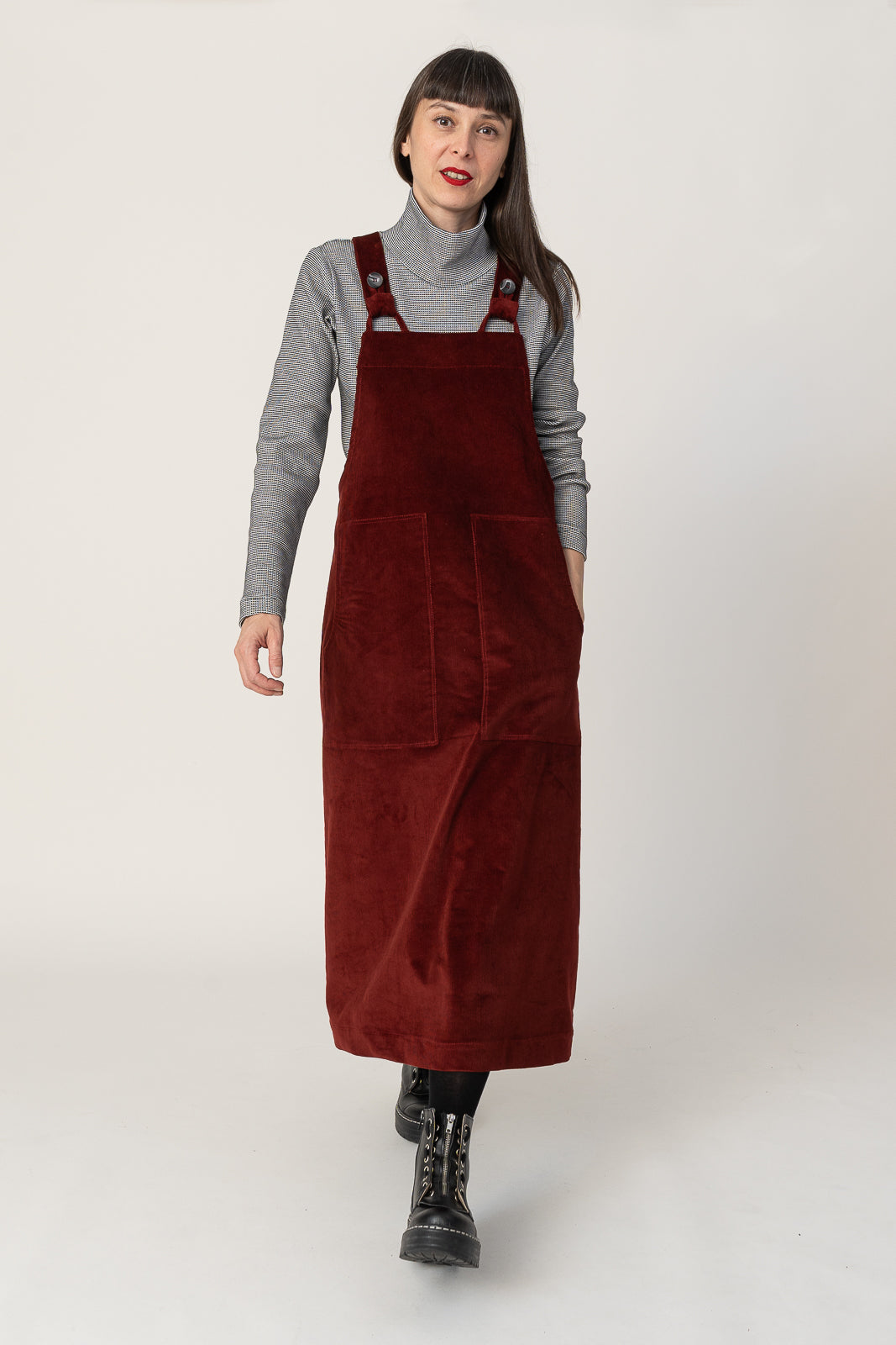 Vestido pichi evase de tirantes con cierre de botón y bolsillos parche. Muy agradable y cómodo de llevar. Diseñado por Elisa Muresan. Patronaje y confección a mano en Zaragoza en nuestro propio taller.