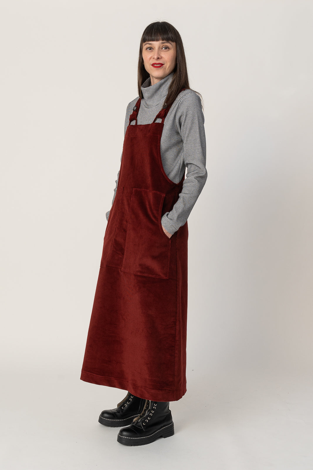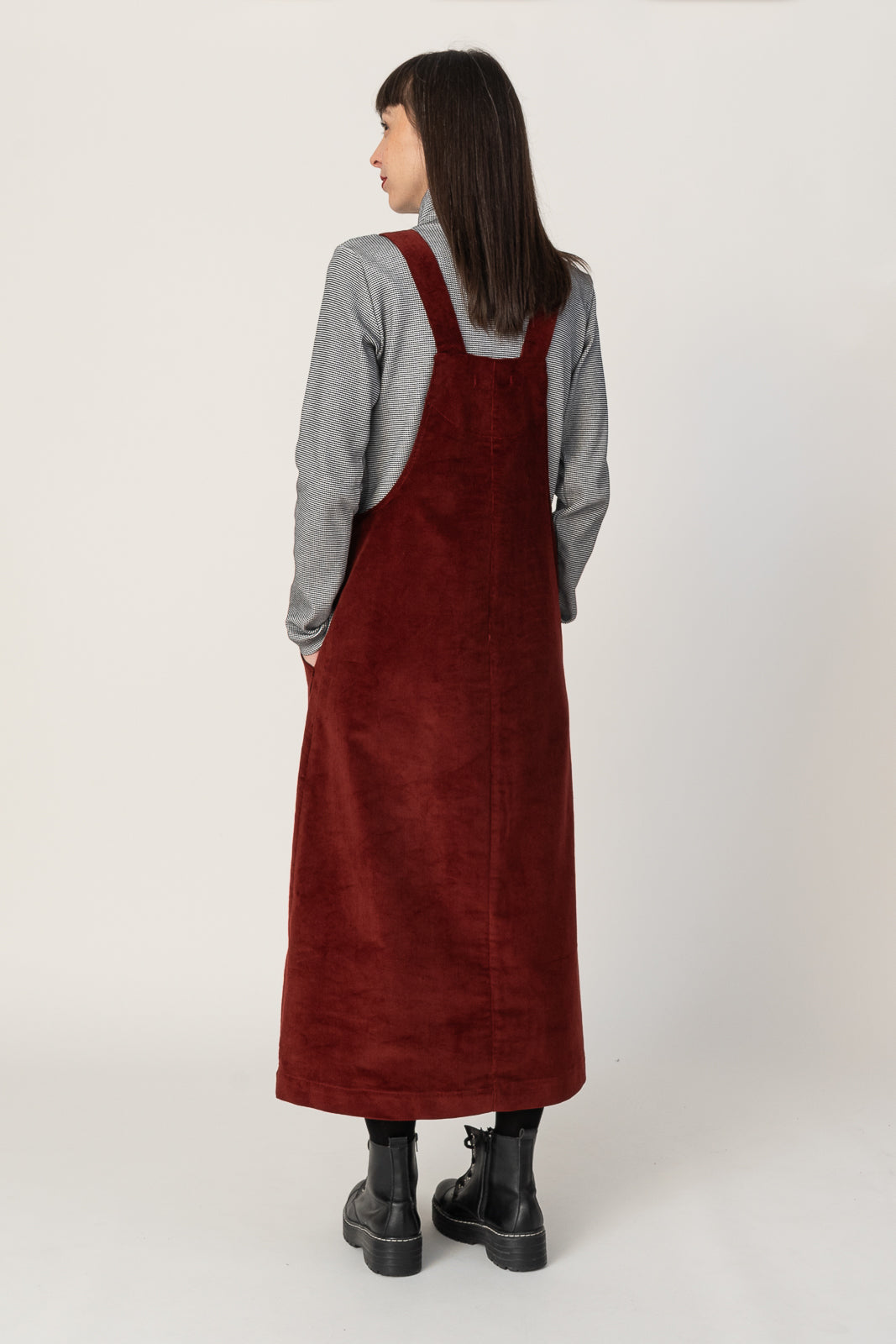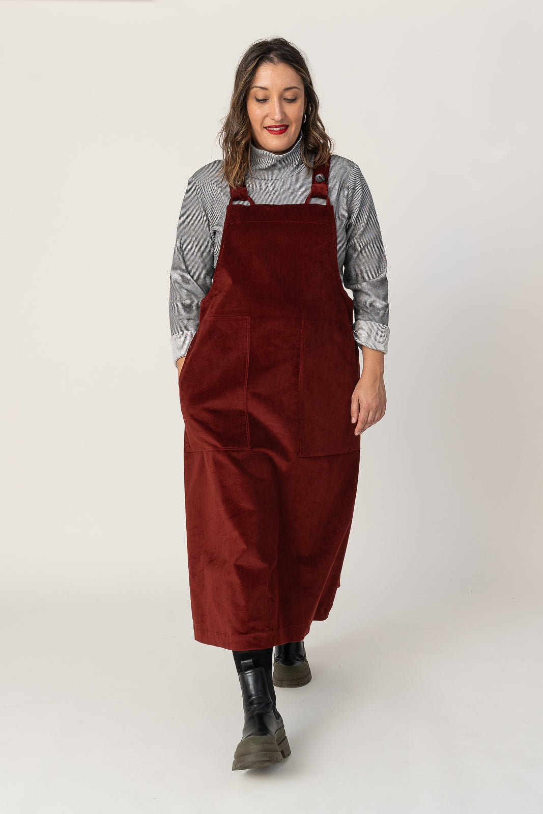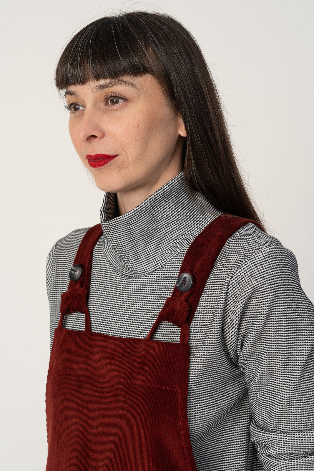 Vestido pichi evase de tirantes con cierre de botón y bolsillos parche. Muy agradable y cómodo de llevar. Diseñado por Elisa Muresan. Patronaje y confección a mano en Zaragoza en nuestro propio taller.